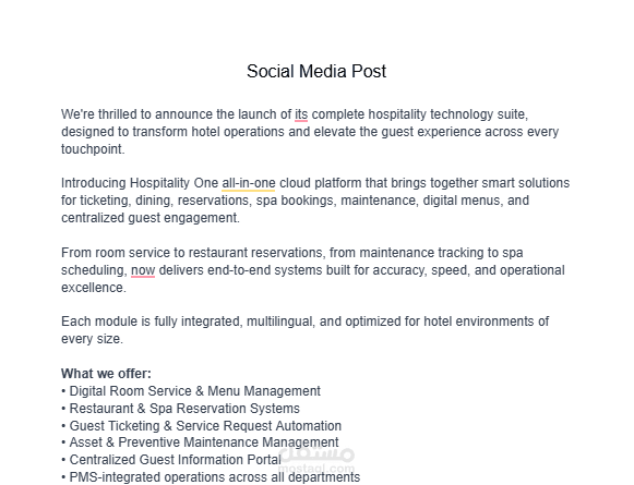 عرض تقديمي بسيط وواضح يشرح نظامًا تقنيًا متكاملًا لإدارة الفنادق. يشمل القوائم الرقمية، الخدمة الفندقية، الحجوزات، السبا، الصيانة، طلبات الضيوف، ومنصة مركزية تربط كل شيء. يوضح العرض المميزات والفوائد بطريقة سهلة ومباشرة.