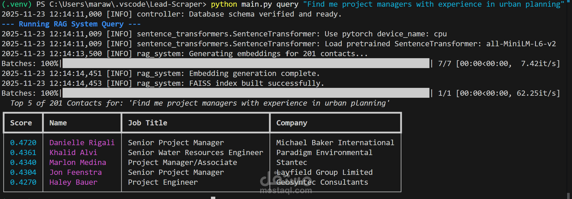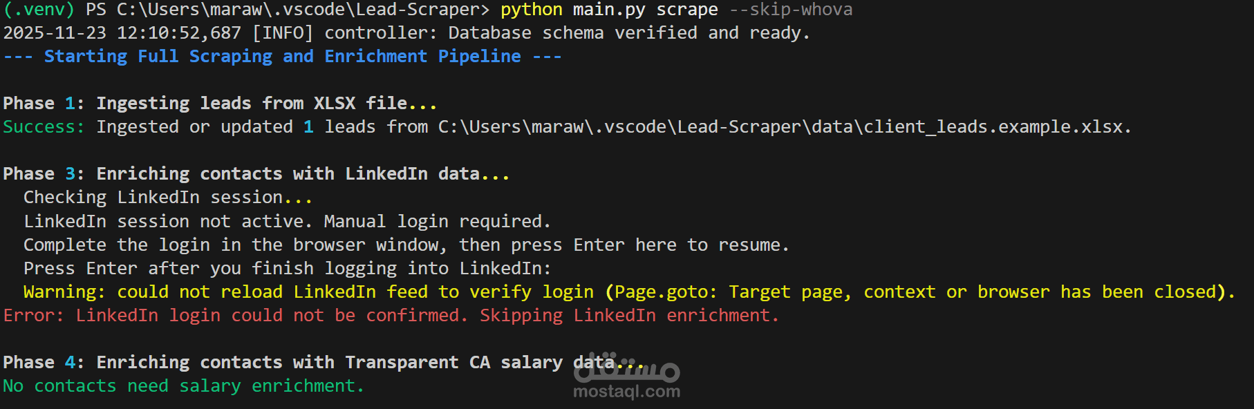نظام متكامل لجمع وتحليل بيانات العملاء المحتملين من مصادر متعددة (مثل LinkedIn و غيره) يشمل النظام: