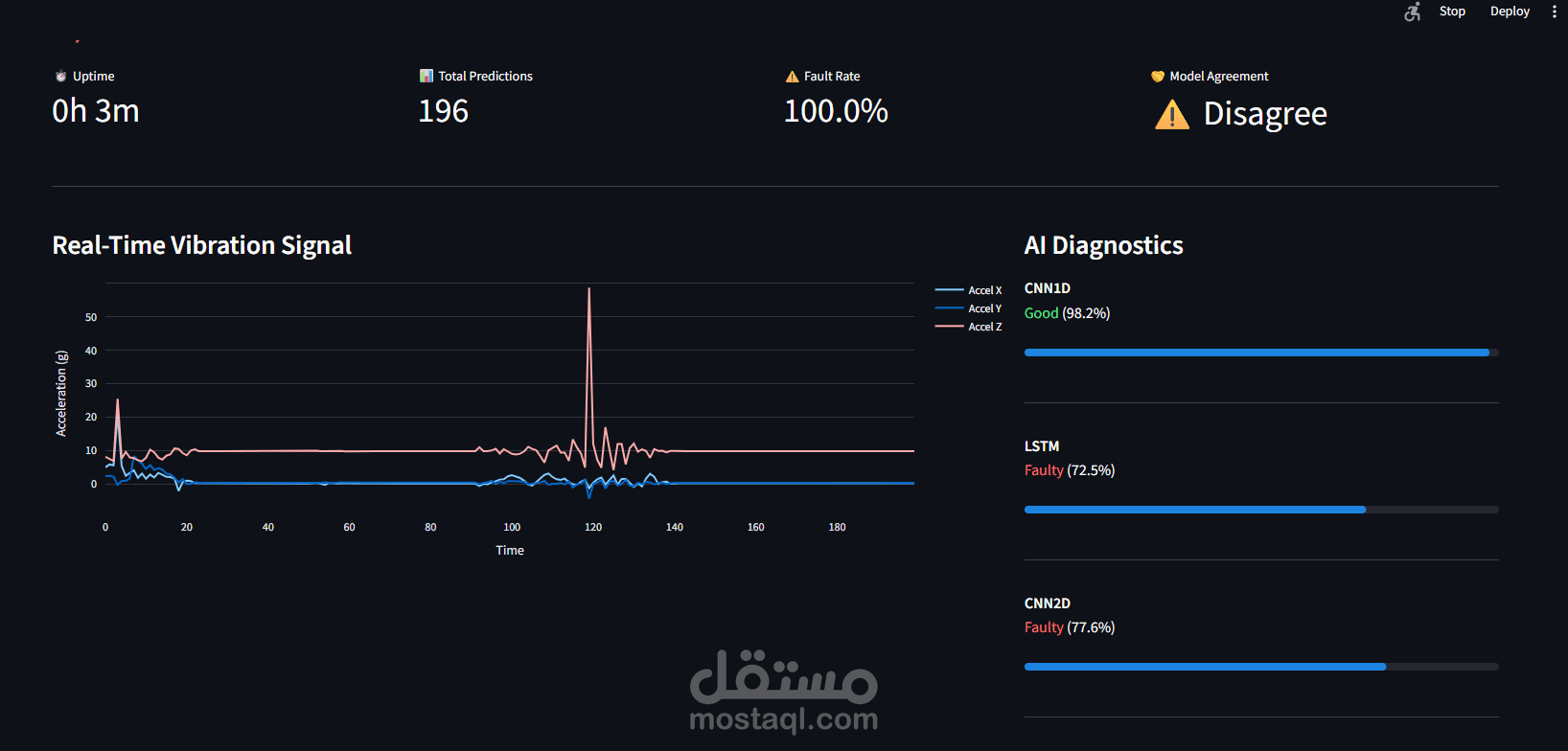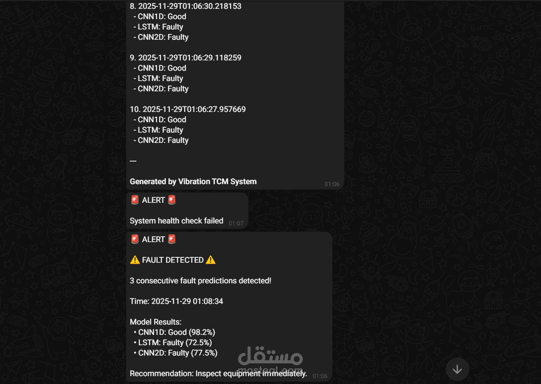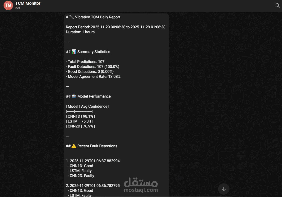 تطوير نماذج CNN متقدمة لتحليل إشارات الاهتزاز، بهدف التنبؤ بالأعطال وحالة الأدوات في الأنظمة الميكانيكية بدقة عالية.
