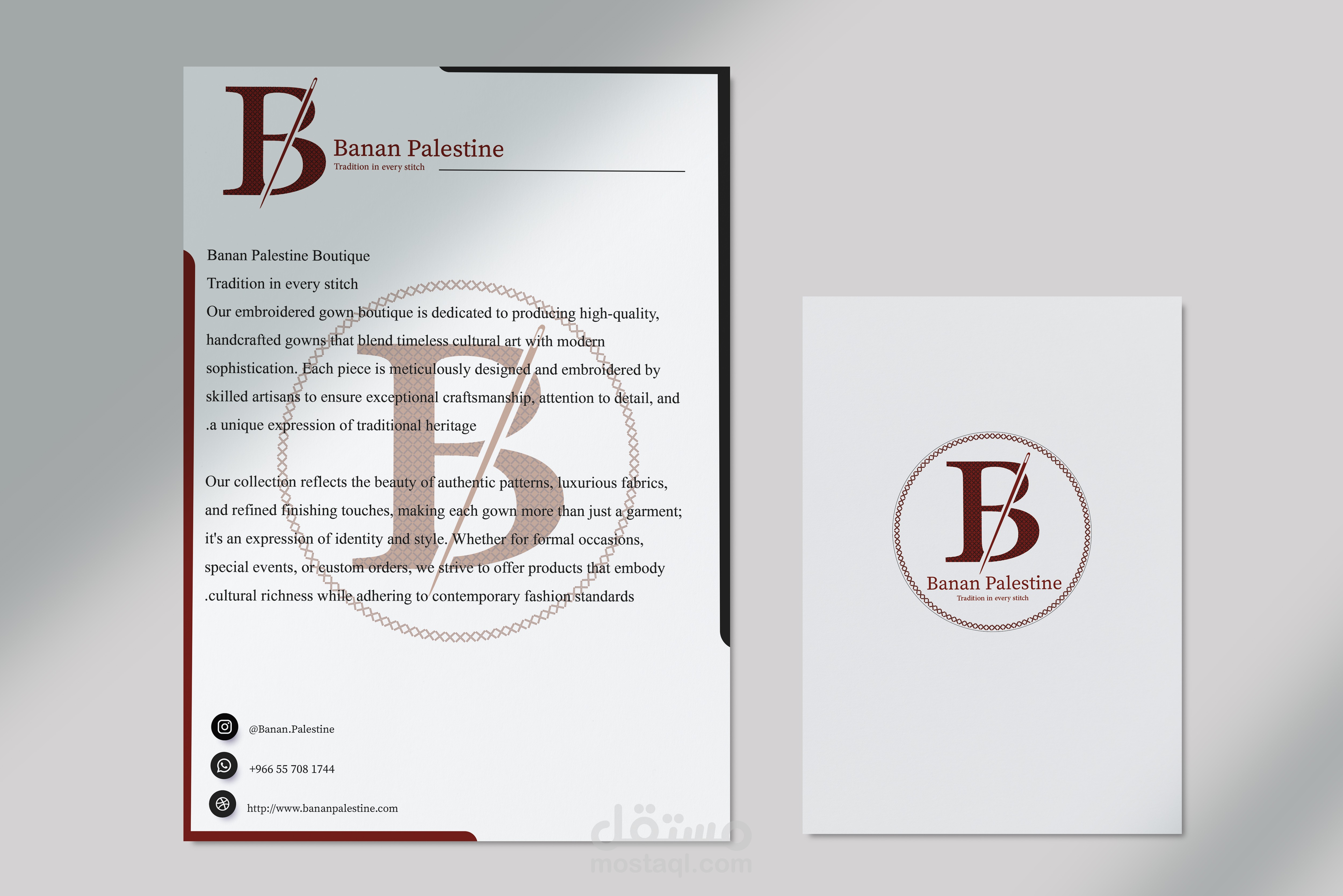 يرتكز هذا المشروع على تطوير هوية بصرية راقية تشمل تصميم شعار أنيق، ورقة مراسلات رسمية، ختم معتمد، وبطاقة عمل بتنسيق احترافي يعكس ثبات العلامة وقيمها.