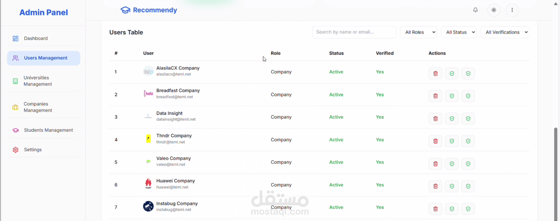 نظام توثيق تحت إشراف الأدمن للشركات والجامعات لزيادة الثقة.