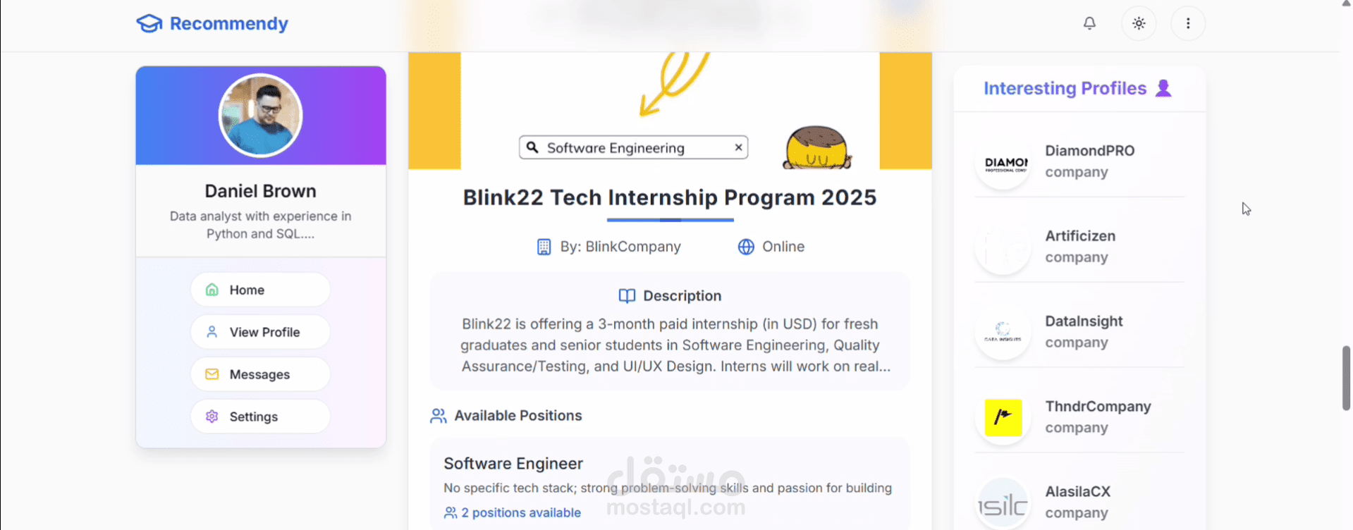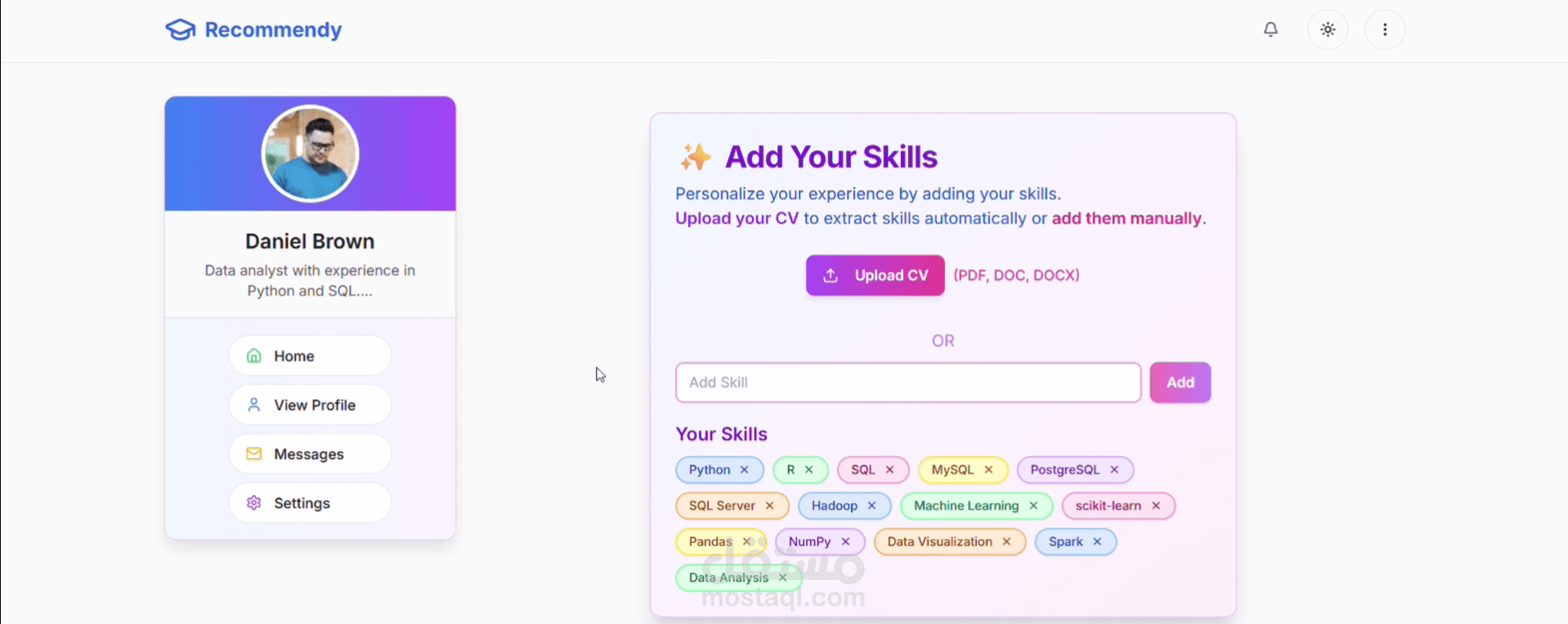 توفير ترشيحات مخصصة للتدريبات والمنح باستخدام نموذج Ollama LLM (Gemma3:4b-it-q8_0) مع مطابقة ذكية للمهارات وتحليل دلالي.