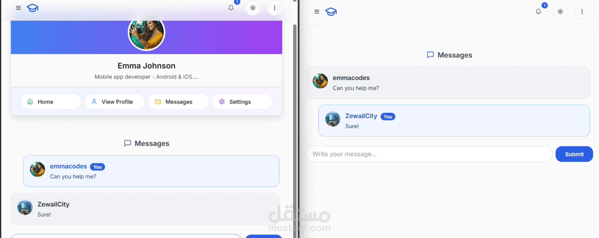 نظام شات مباشر باستخدام SignalR للمراسلة بين الطلاب والمؤسسات.