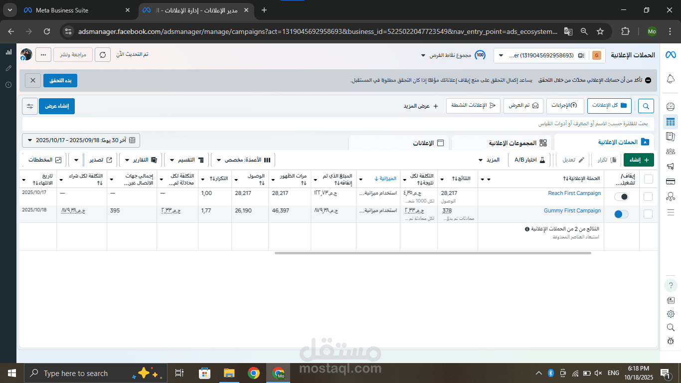 قلنا نجرب نعمل حملتين إعلانيتين واحدة هدفها توصل لأكبر عدد من الناس، والتانية تخلق تفاعل مباشر مع العملاء.
