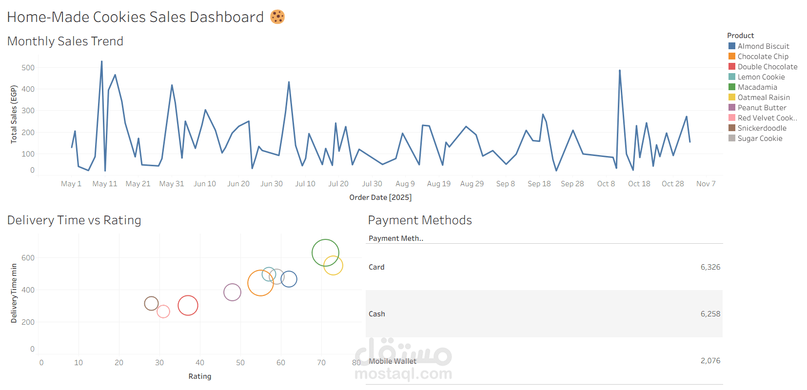 مشروع: تصميم لوحة تحكم مبيعات الكوكيز المنزلية
