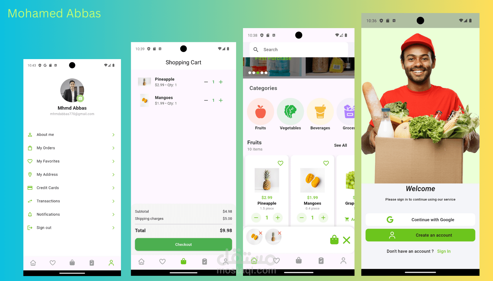 Built a grocery shopping app with a home page showcasing categories, product search, and detailed product view.