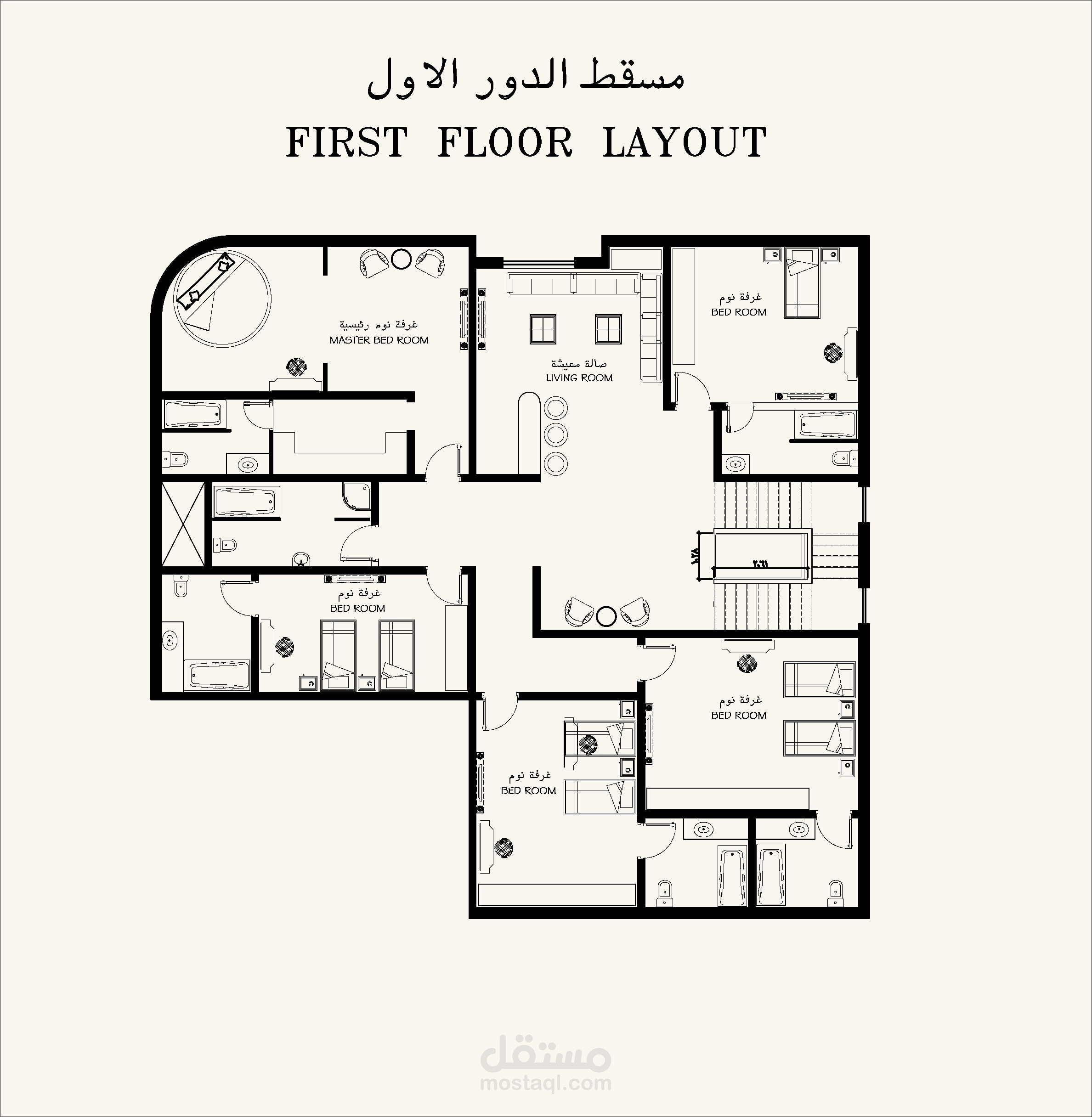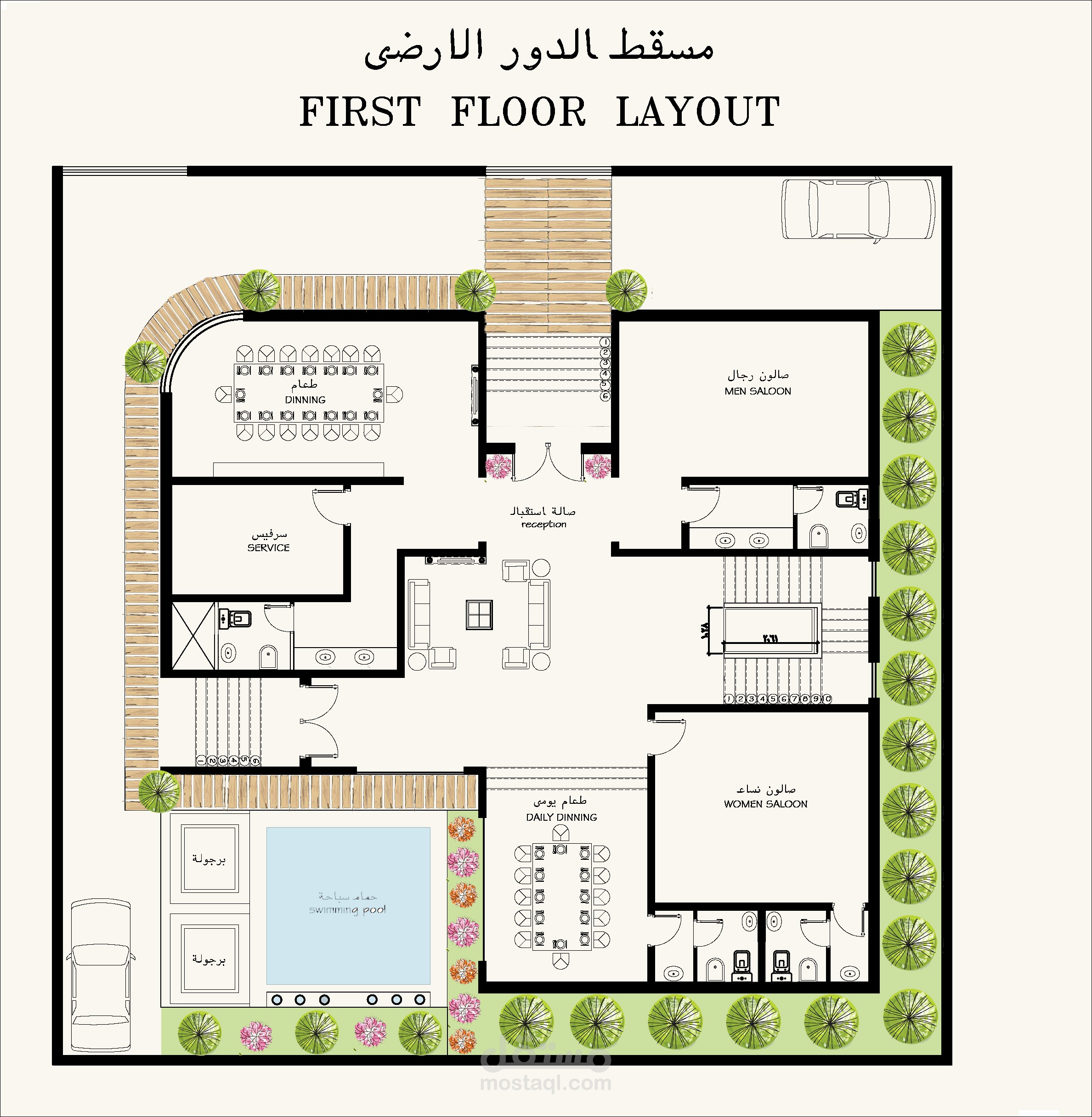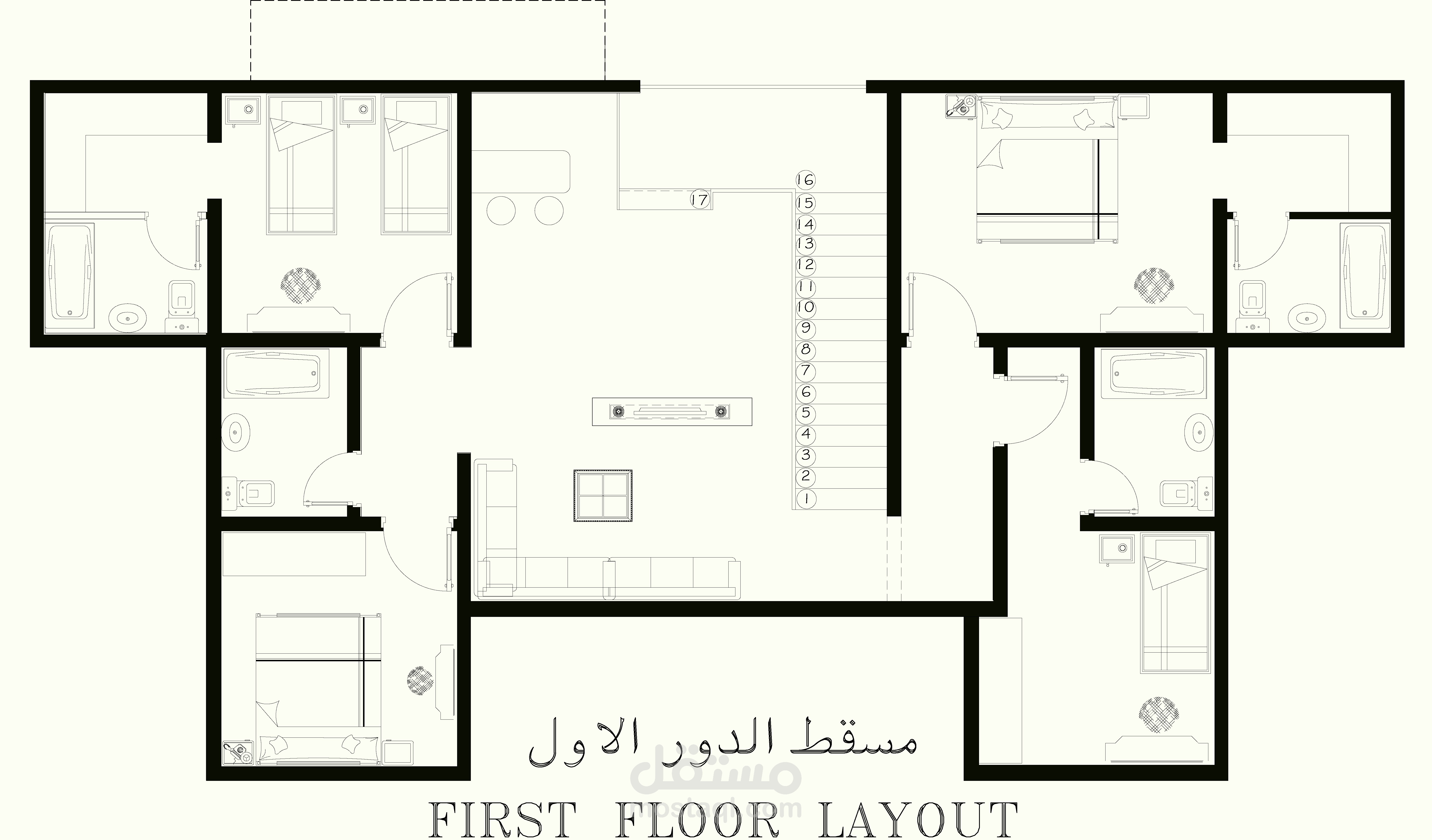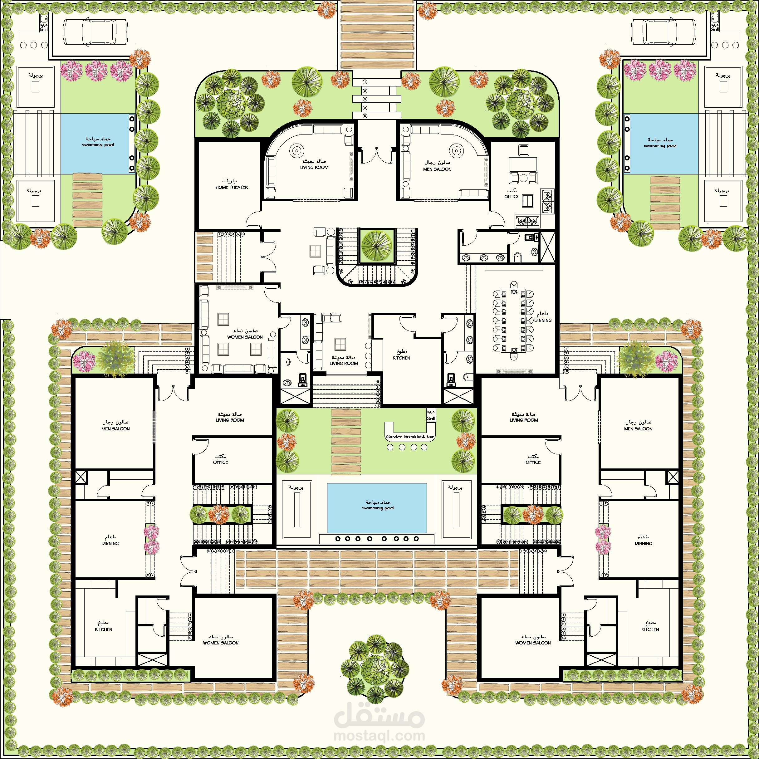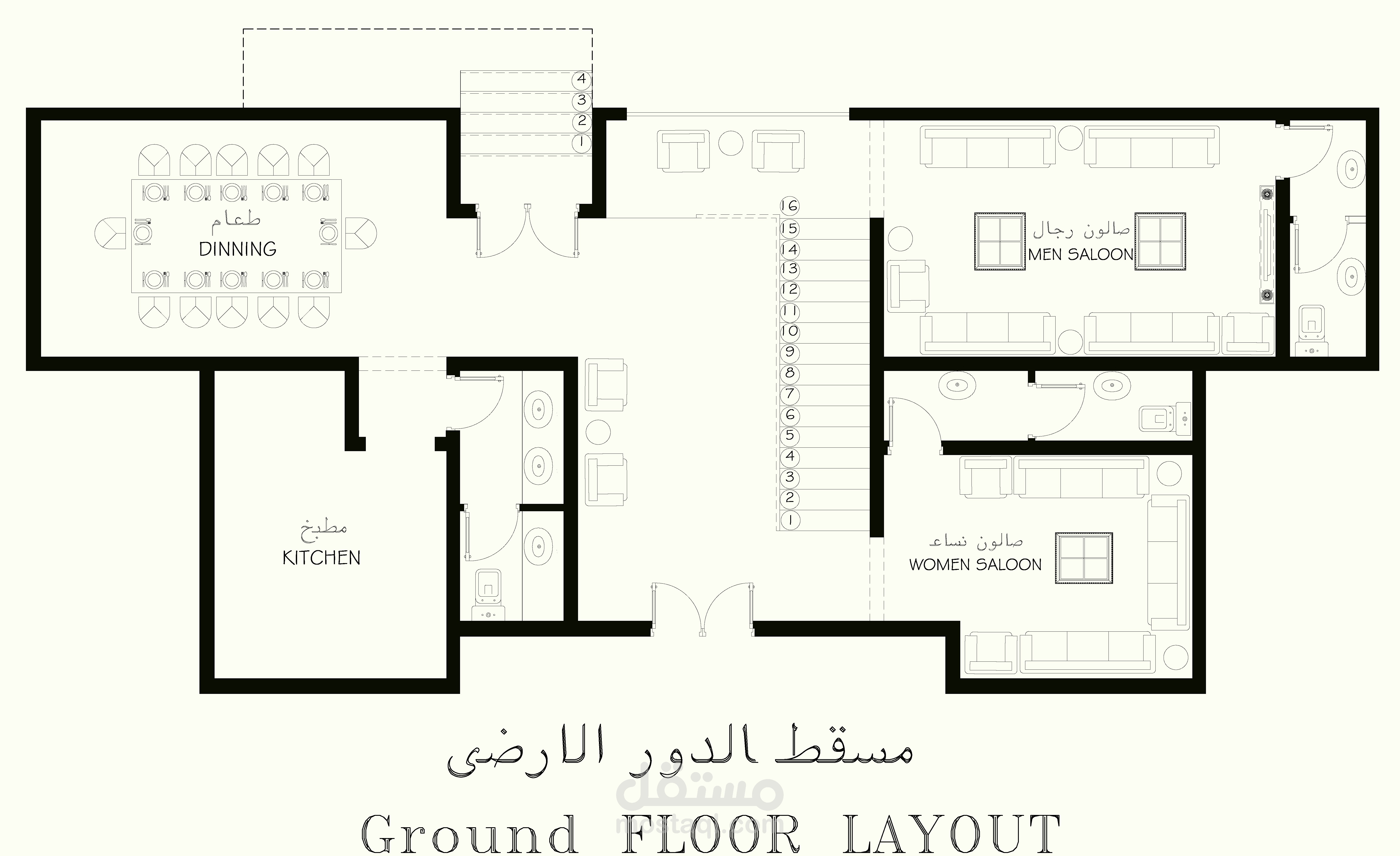 مساقط افقية لفلل بالسعودية مع مراعاة التصميم الداخلى للفراغات ووضع شكل الواجهات الخارجية فى الاعتبار