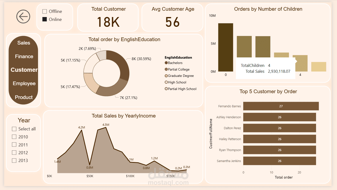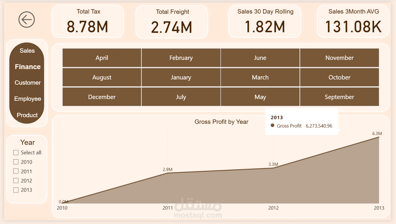 Sales Dashboard: تحليل المبيعات وتتبع الأداء الشهري والسنوي.