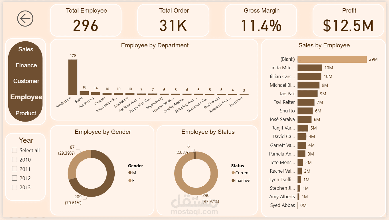 Employee Dashboard: تقييم أداء الموظفين ومؤشرات الإنتاجية.