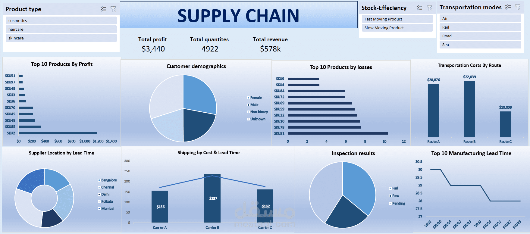 أمتلك خبرة في تحليل وإدارة سلسلة التوريد بهدف تحسين الكفاءة وتقليل التكاليف وزيادة رضا العملاء. أقوم بتحليل البيانات المتعلقة بالمخزون، الموردين، وعمليات النقل والتوزيع باستخدام Excel، SQL، وPower BI لإنشاء تقارير ولوحات معلومات تفاعلية تساعد الشركات على اتخاذ قرارات استراتيجية دقيقة.