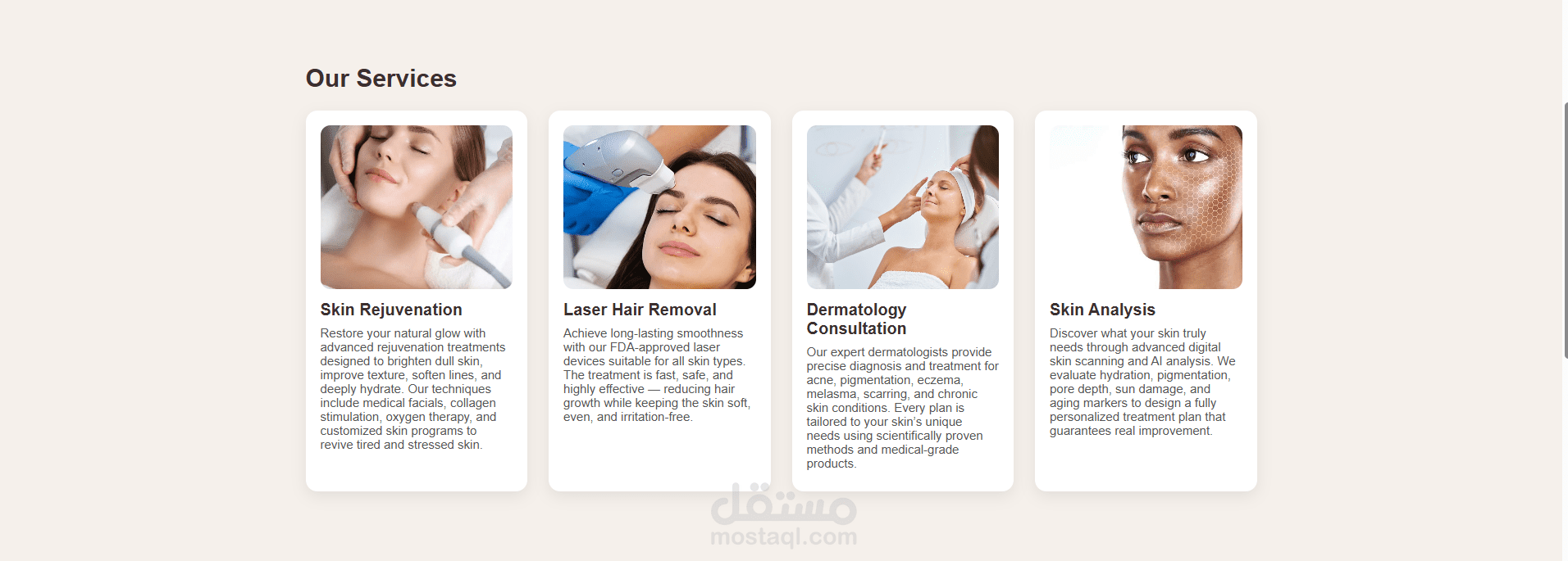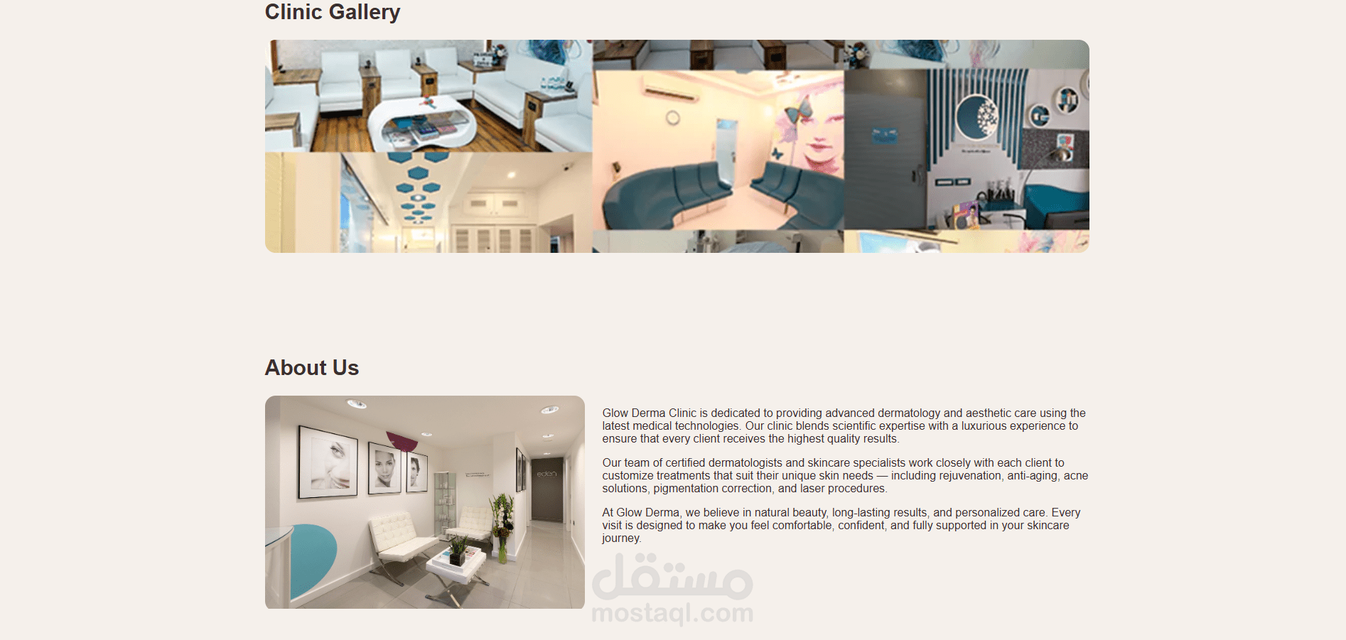 تم تصميم موقع إلكتروني احترافي لعيادة Glow Derma Clinic، يهدف إلى تقديم تجربة مستخدم مريحة وجذابة لزوار الموقع.