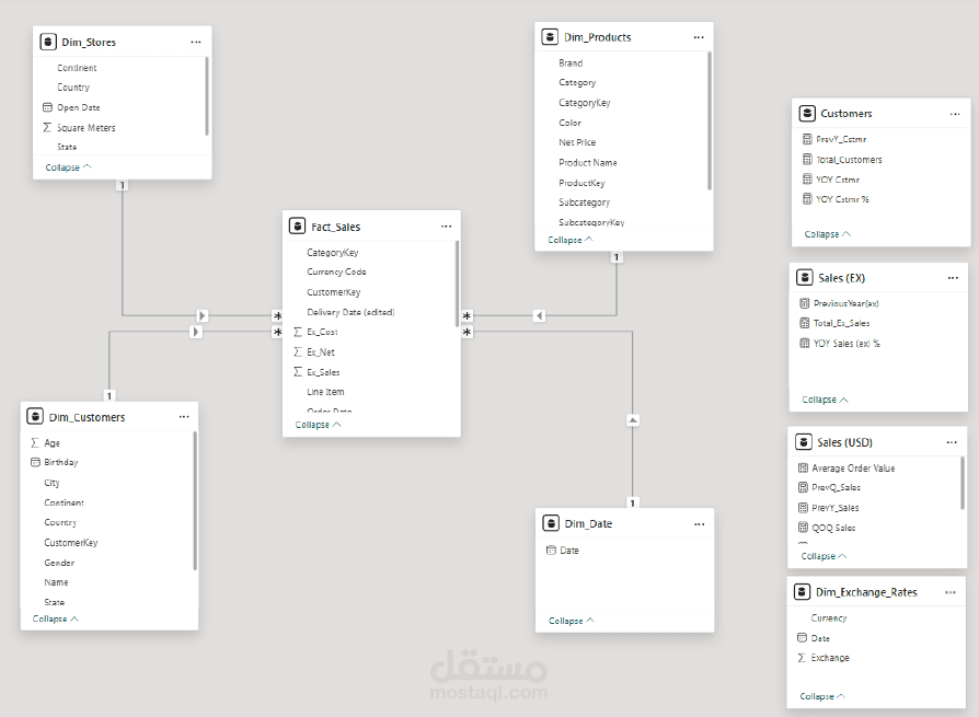 -Data Loading & Cleaning: Importing and structuring sales, product, customer, store, and currency data into a Star Schema, with all issues corrected and documented.
