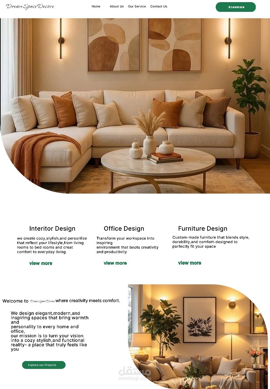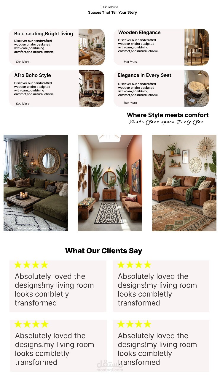 التصميم مناسب لمواقع الديكور، شركات الأثاث، البراندز المتخصصة في تصميم المنازل والمكاتب، وأي شركة عايزة تعرض شغلها بطريقة فخمة ونظيفة.