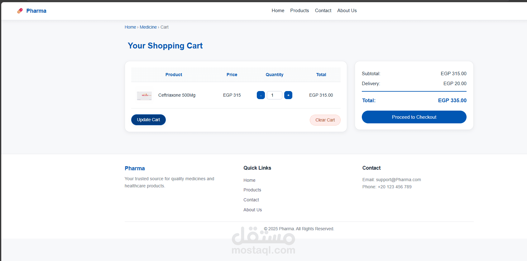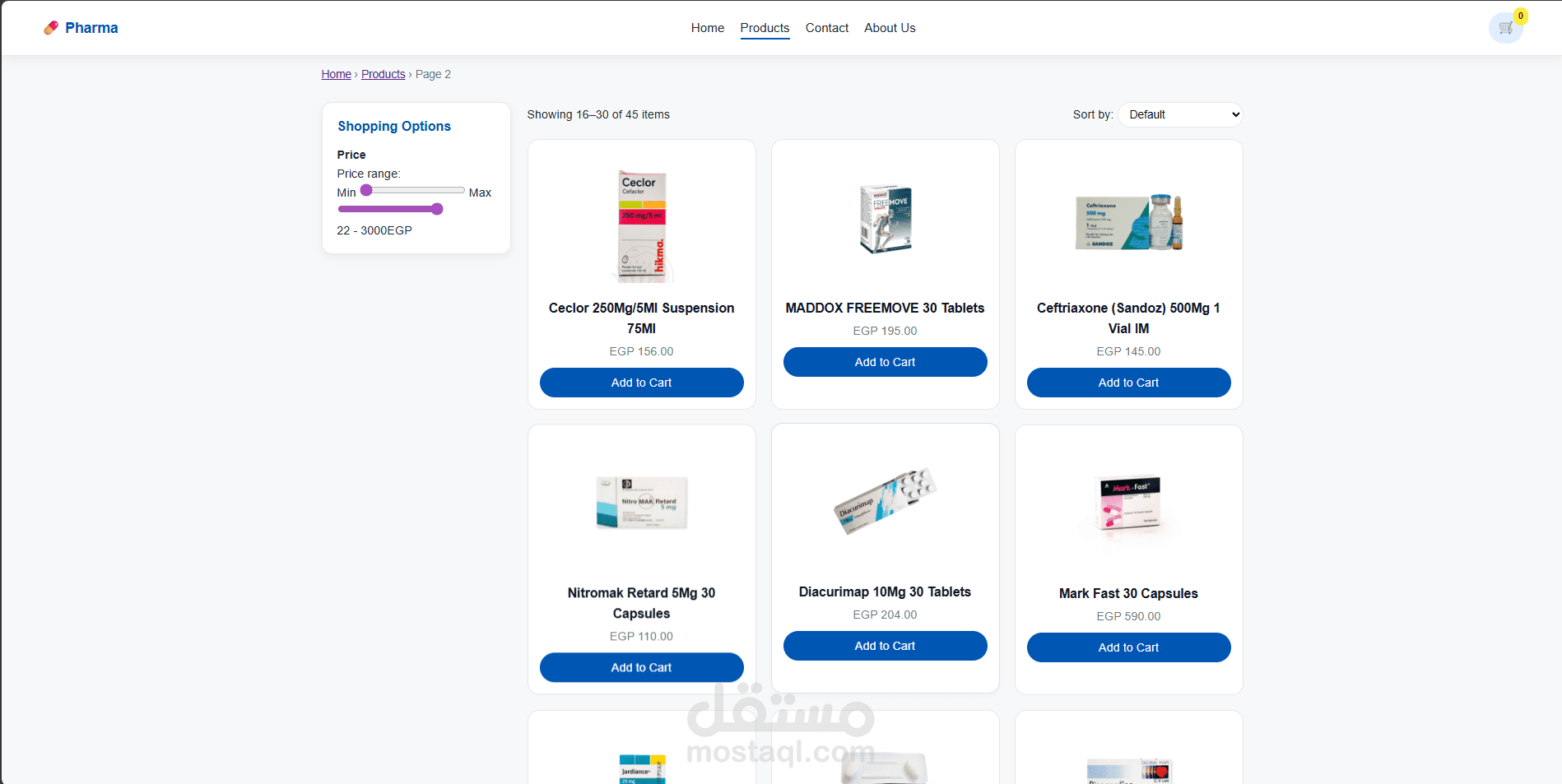 متجر لبيع الادوات الطبية والادوية المظهر والصفحات صممت بالكامل بناء علي طلب العميل