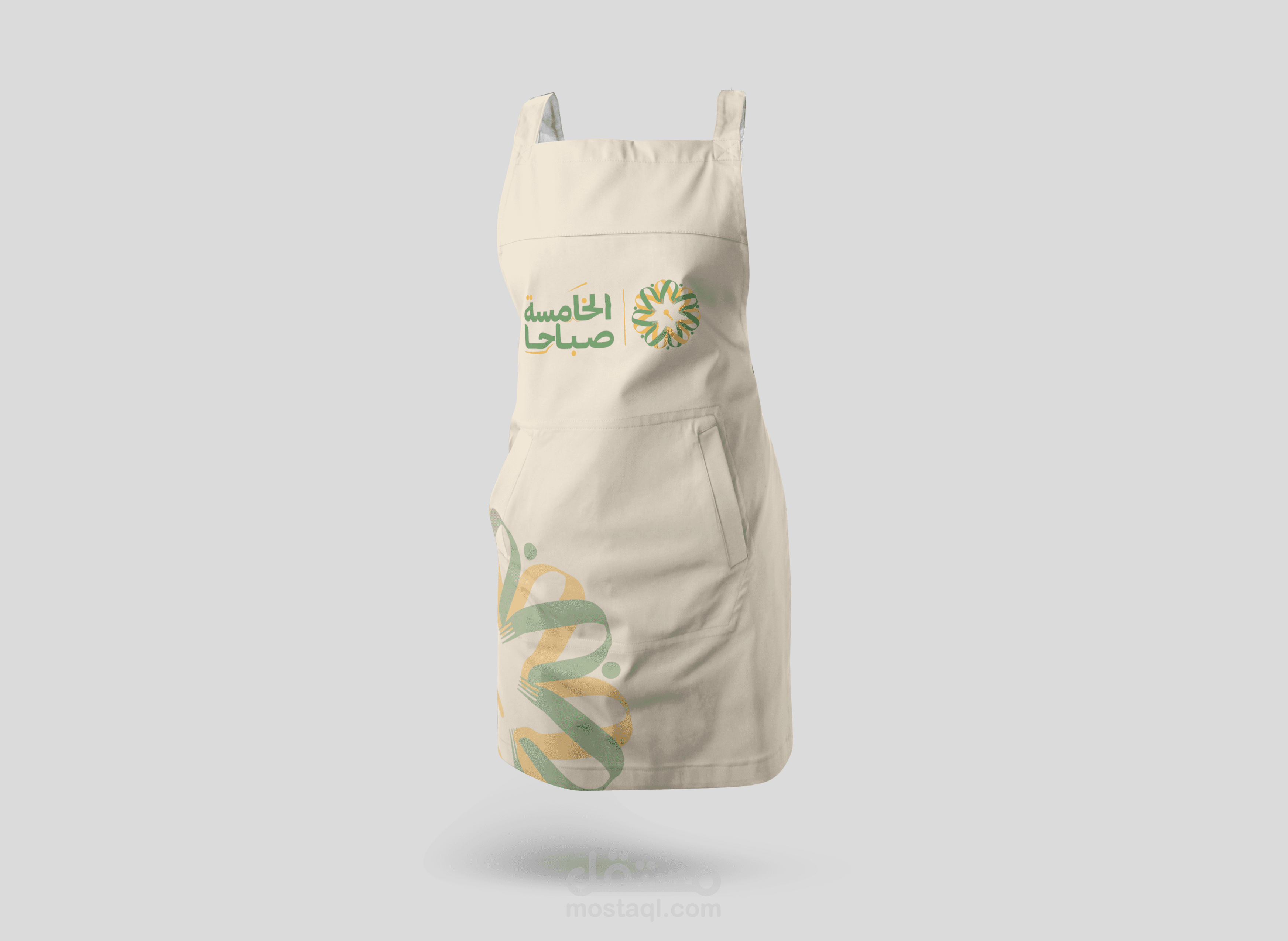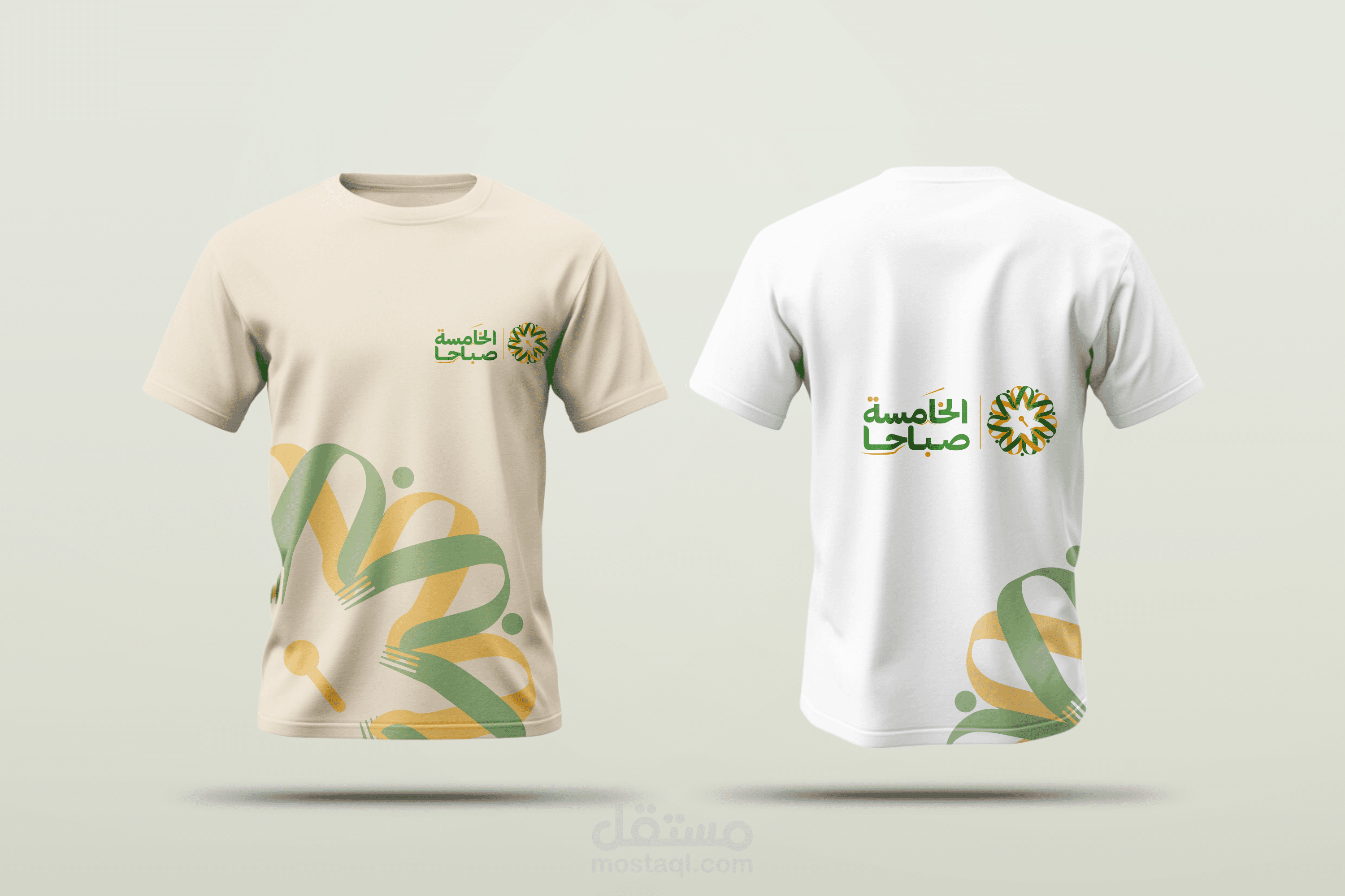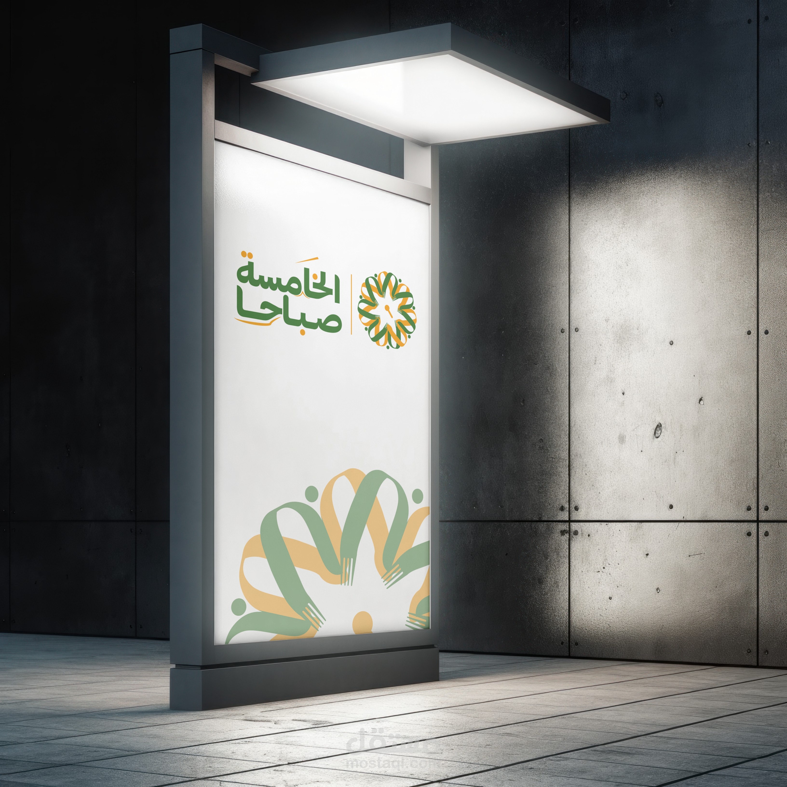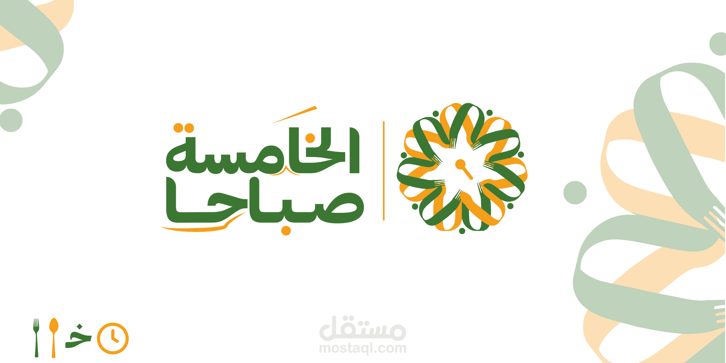 اعتمدت فكرة التصميم على دمج حركة الساعة عند الخامسة صباحًا مع رموز الطعام (الملعقة، الشوكة، والبخار) لتجسيد معاني: