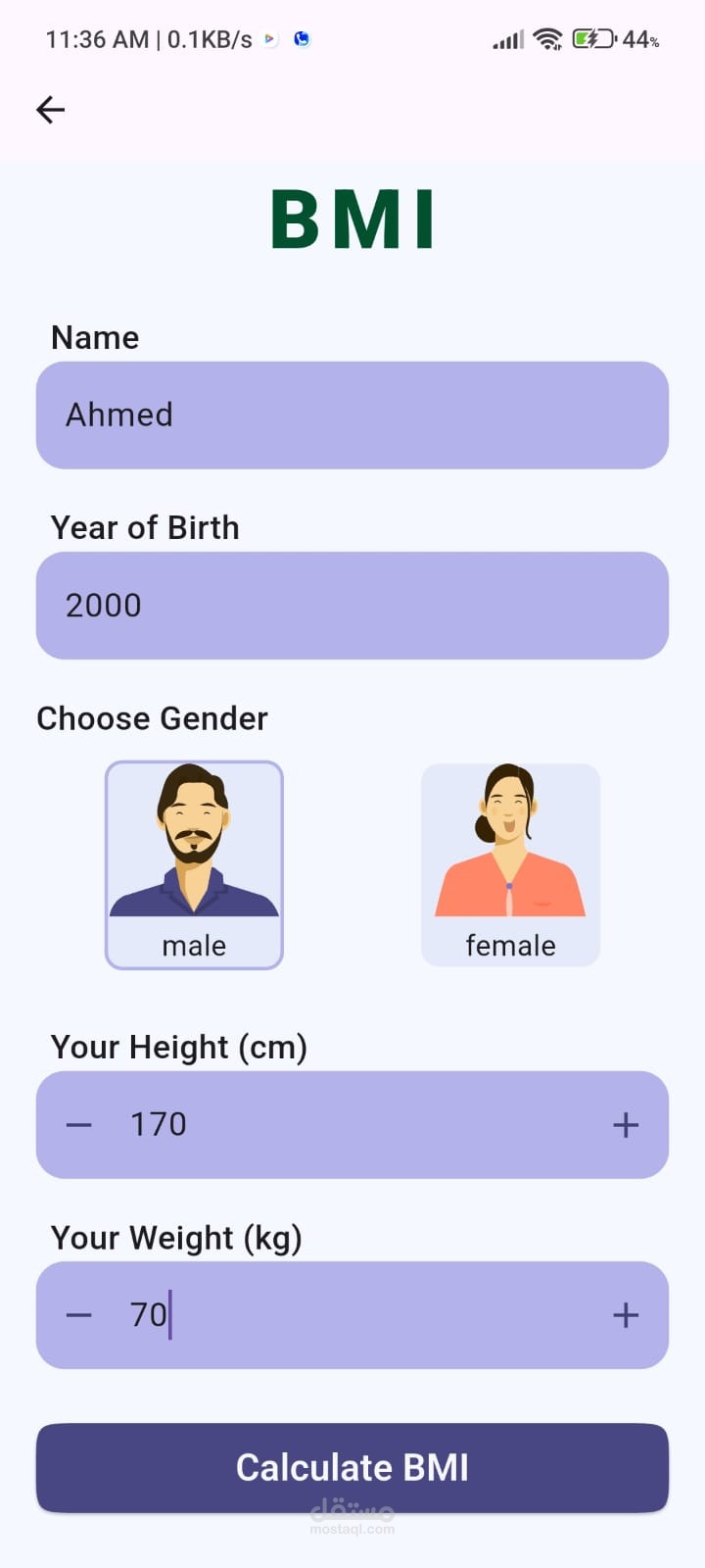 A simple and intuitive Flutter application that calculates the user’s Body Mass Index