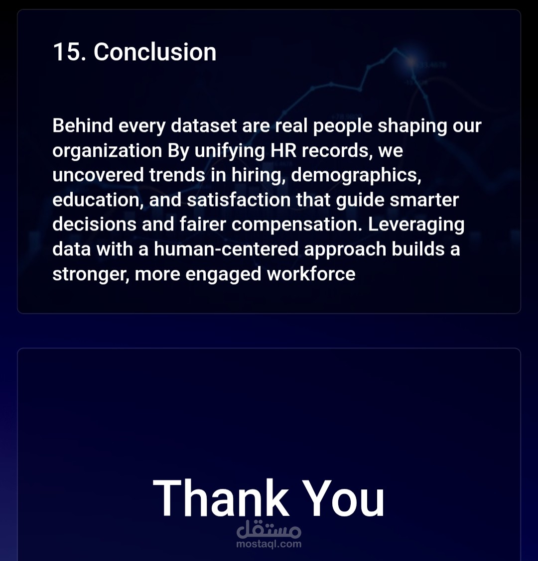 أقدم خدمة تصميم عروض تقديمية احترافية لموضوع Human Side of Data أو أي محتوى متعلق بالبيانات والموارد البشرية والتحليل. أسلّم عرضًا منسقًا بدقة، من 10 إلى 15شريحة، مع صفحة غلاف متقنة وهوية بصرية واضحة، وبأسلوب يناسب العروض الأكاديمية والعملية