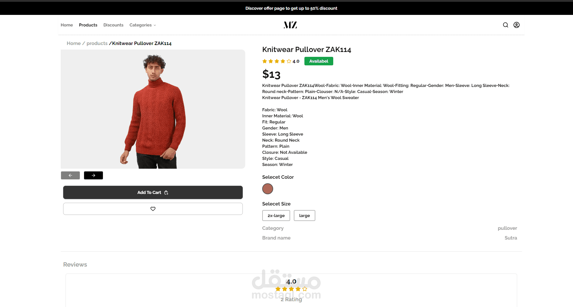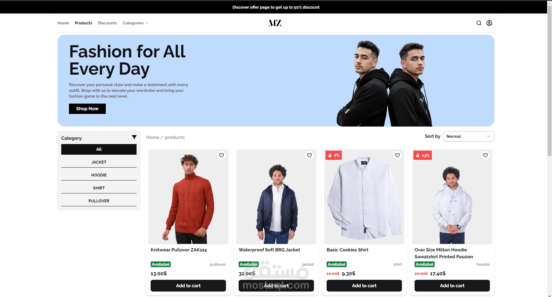 متجر إلكتروني لبيع الملابس الرجالية مع تصميم عصري وسريع، ويوفر للمستخدم تجربة تسوق سلسة مع إدارة كاملة للمنتجات والطلبات.