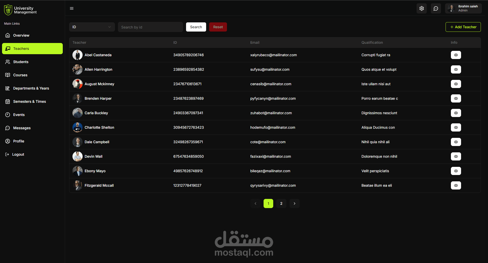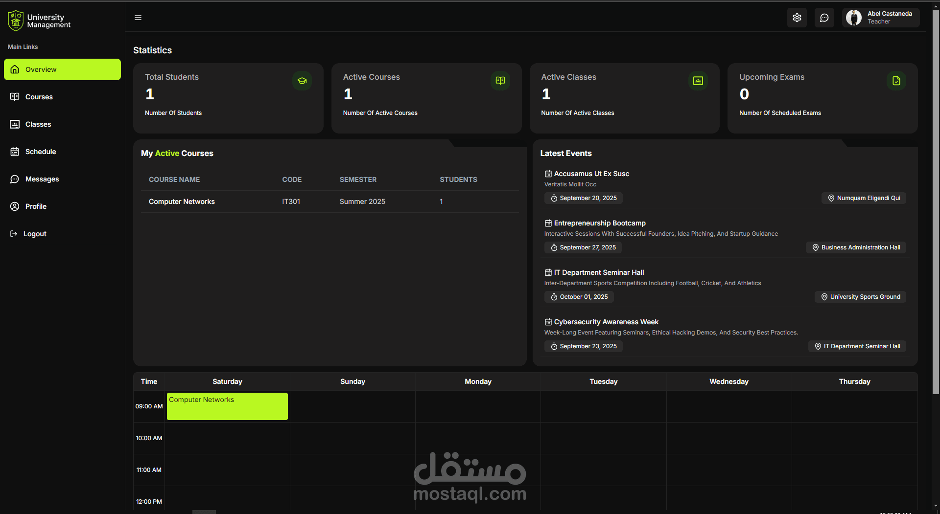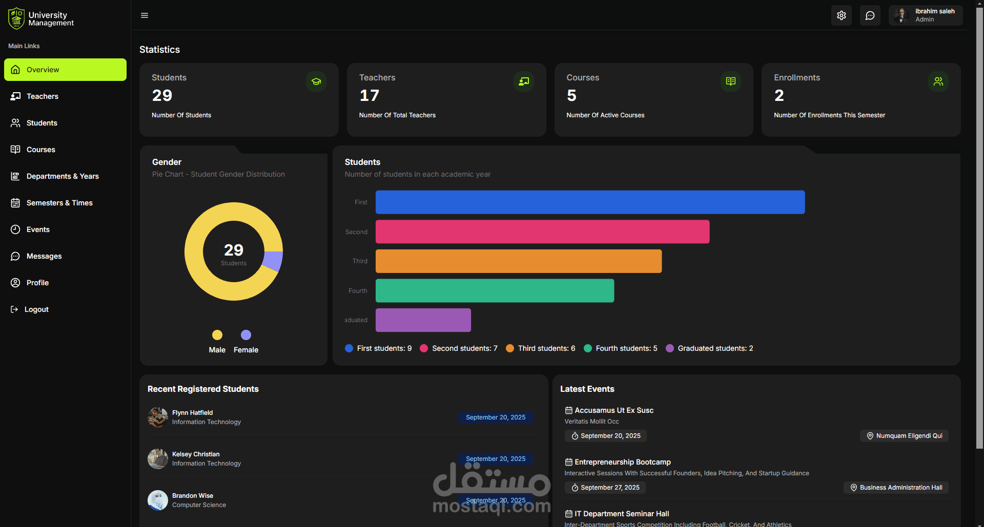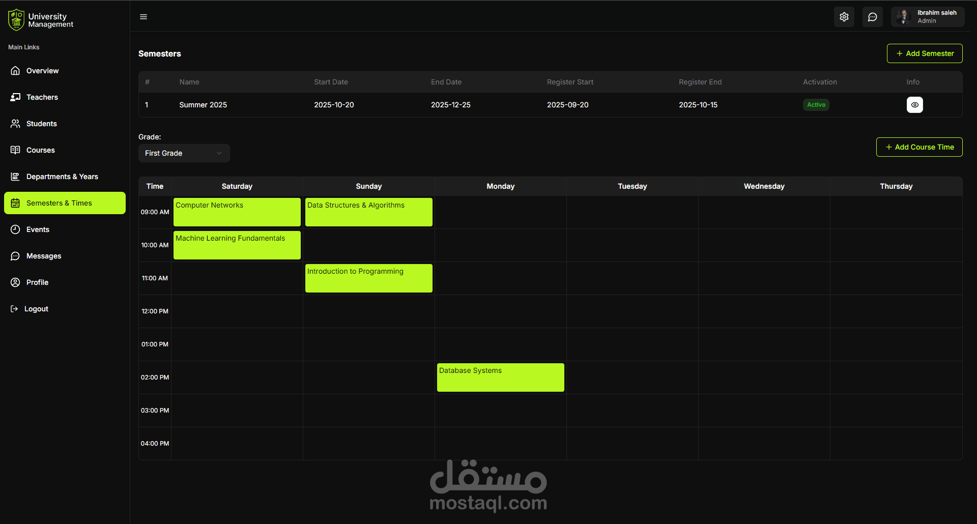 نظام إداري متكامل لإدارة الجامعات يشمل الطلاب، أعضاء هيئة التدريس، المواد، الجداول، الامتحانات، والإعلانات.