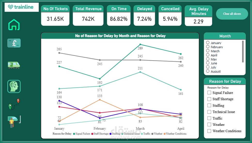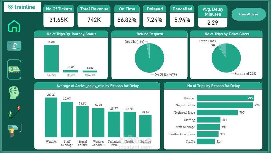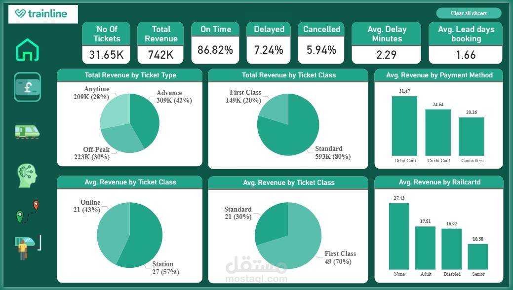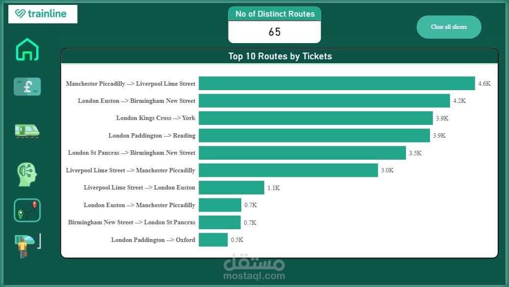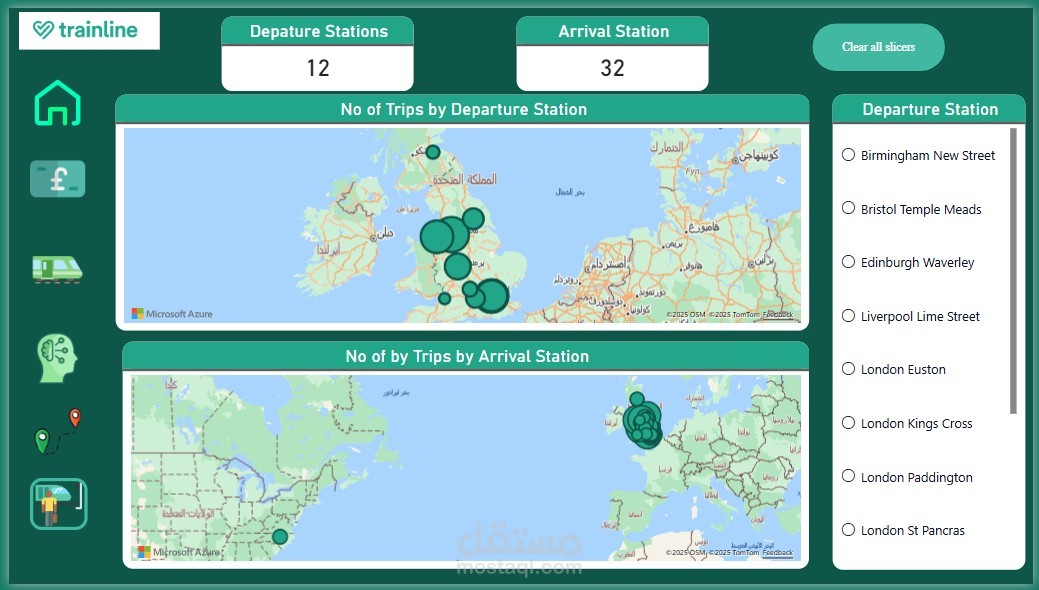 لوحة تفاعلية لرحلات القطارات بالمملكة المتحدة UK Train Rails تم تصميمها ببرنامج Power BI