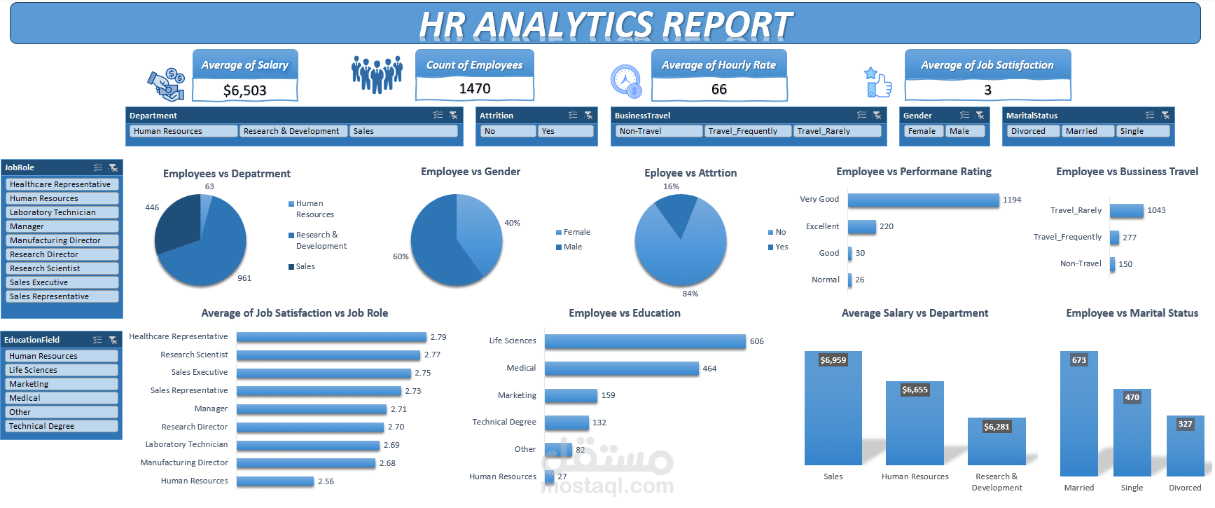 لوحة تفاعلية للموارد البشرية HR Analysis تم تصميمها ببرنامج Excel