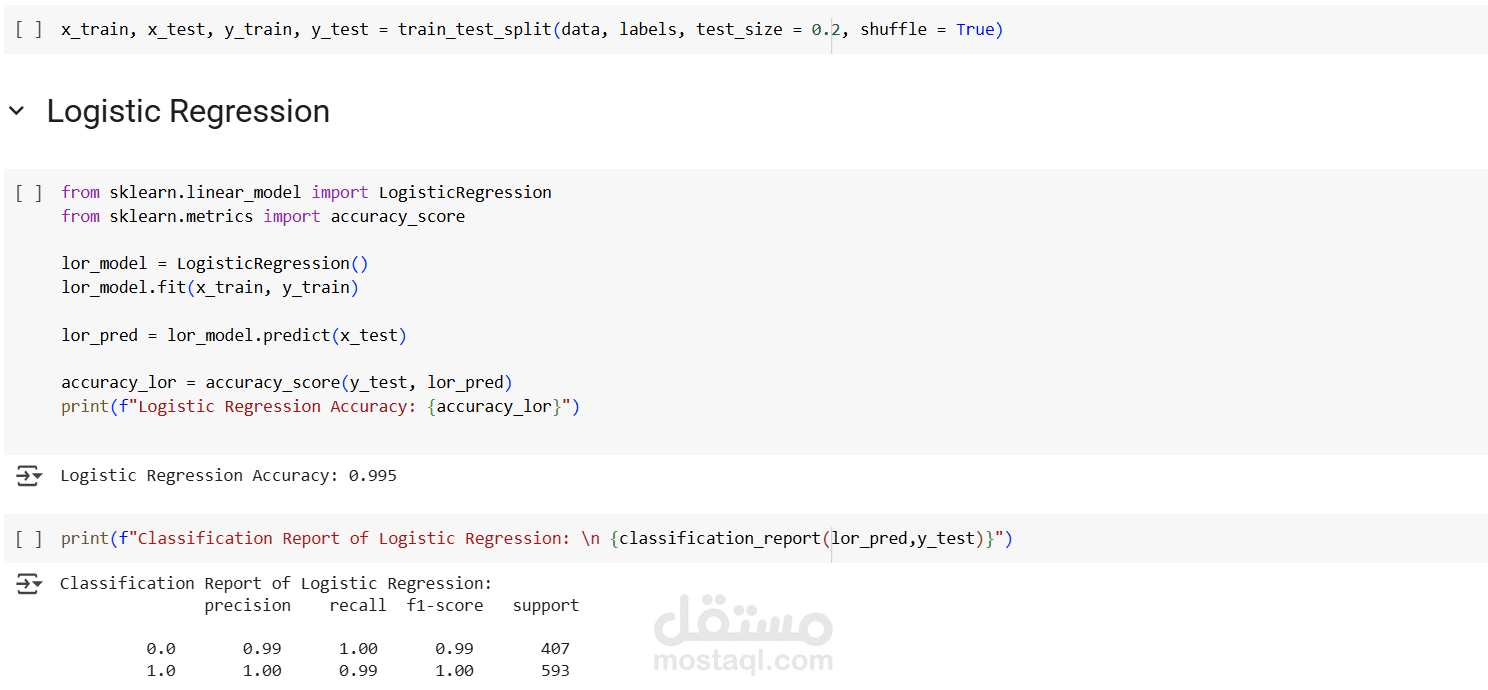 Evaluation: Accuracy, Precision, Recall, F1-score and classification report are computed for each model.