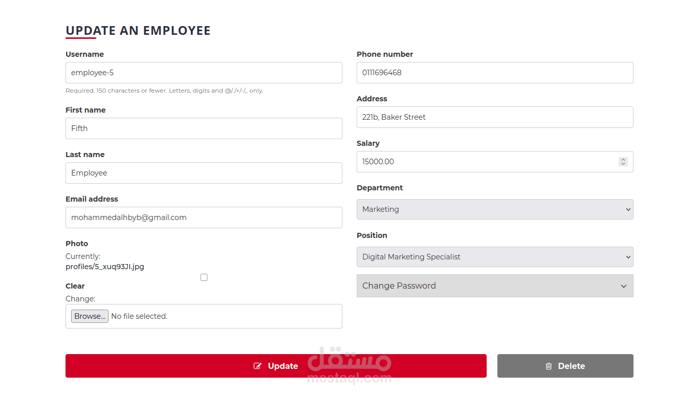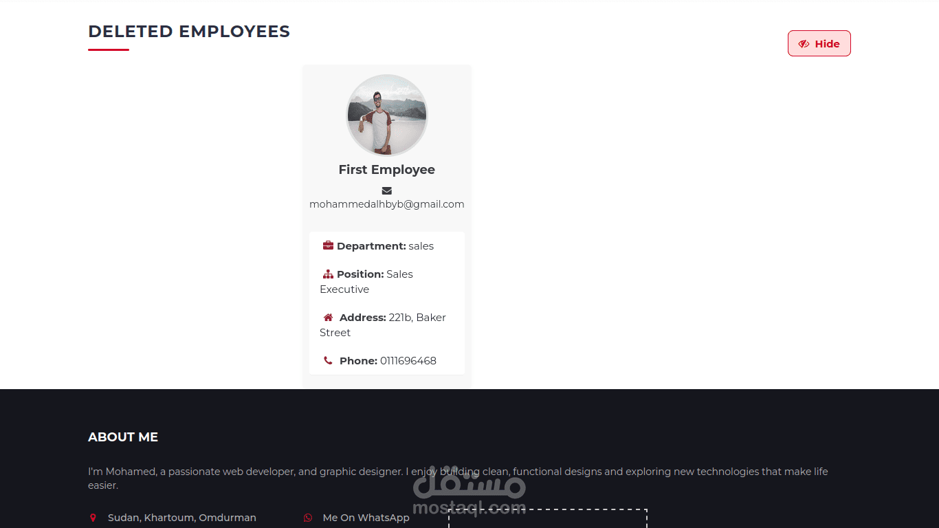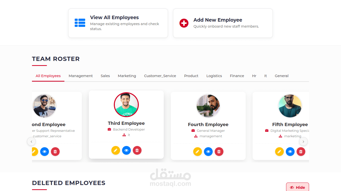 - لوحة تحكم المدير لإدارة الموظفين.