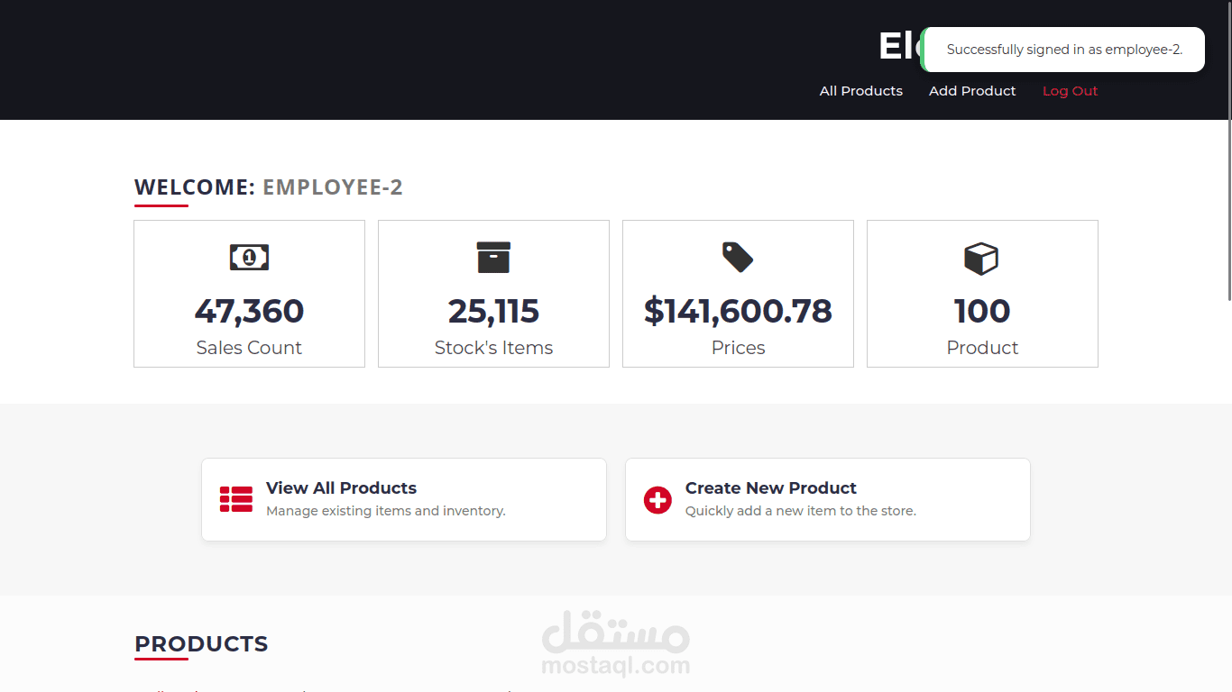 - لوحة تحكم الموظف لإدارة المنتجات.