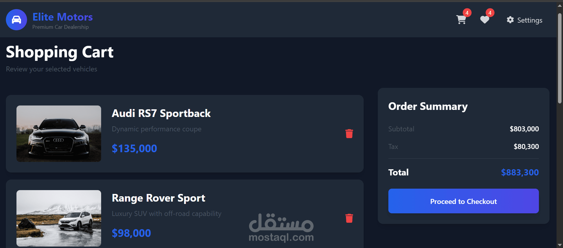 سلة تسوق (Cart) مع إمكانية استخراج فاتورة.