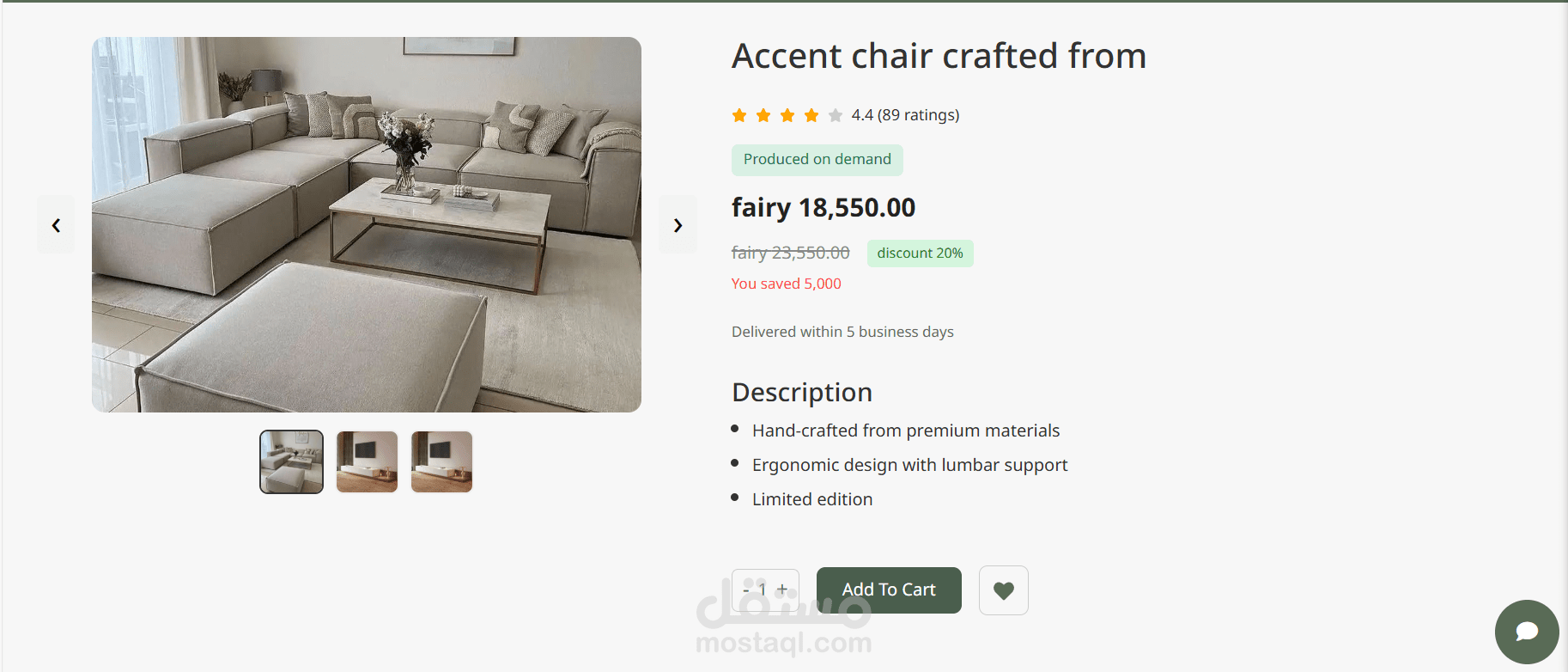 دعم عرض نماذج أثاث 3D لزيادة تفاعل العميل.