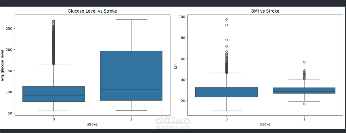 Analyzed how age, BMI, and glucose levels differ for stroke vs. non-stroke patients.
