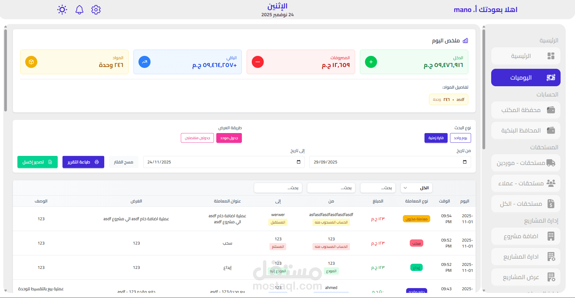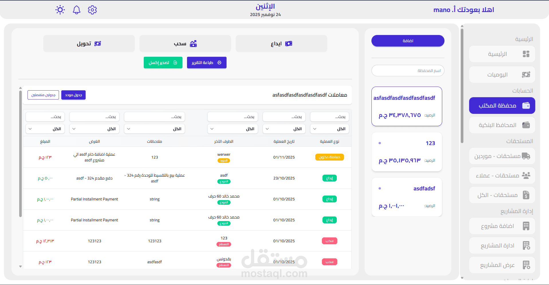 سجل شامل للمعاملات المالية