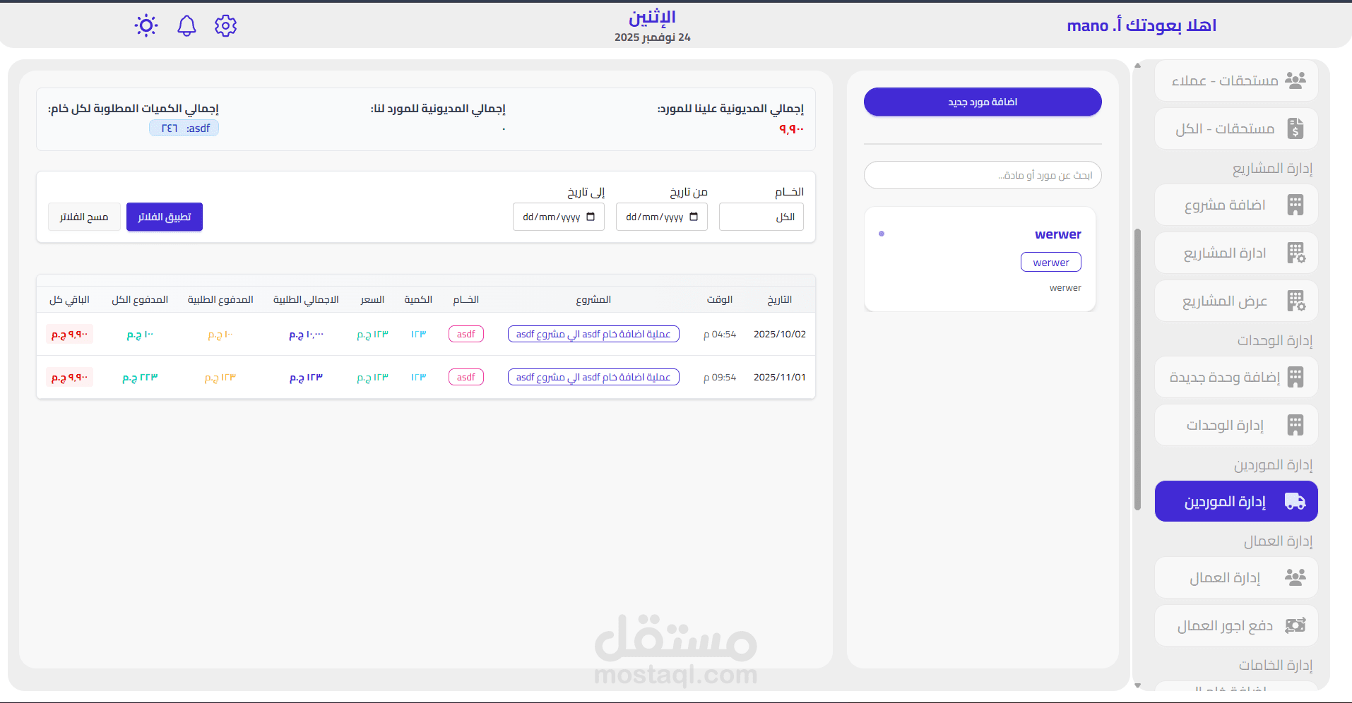 إدارة الموردين والعقود