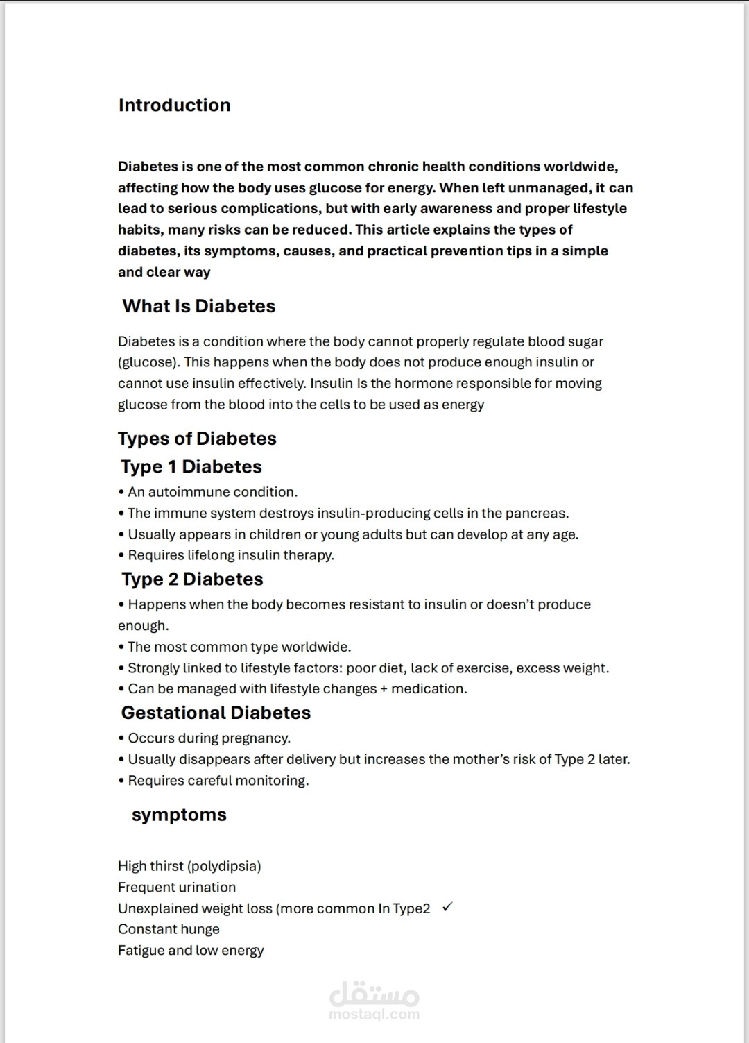 A well-structured medical article about Diabetes Mellitus (Type 1 & Type 2).