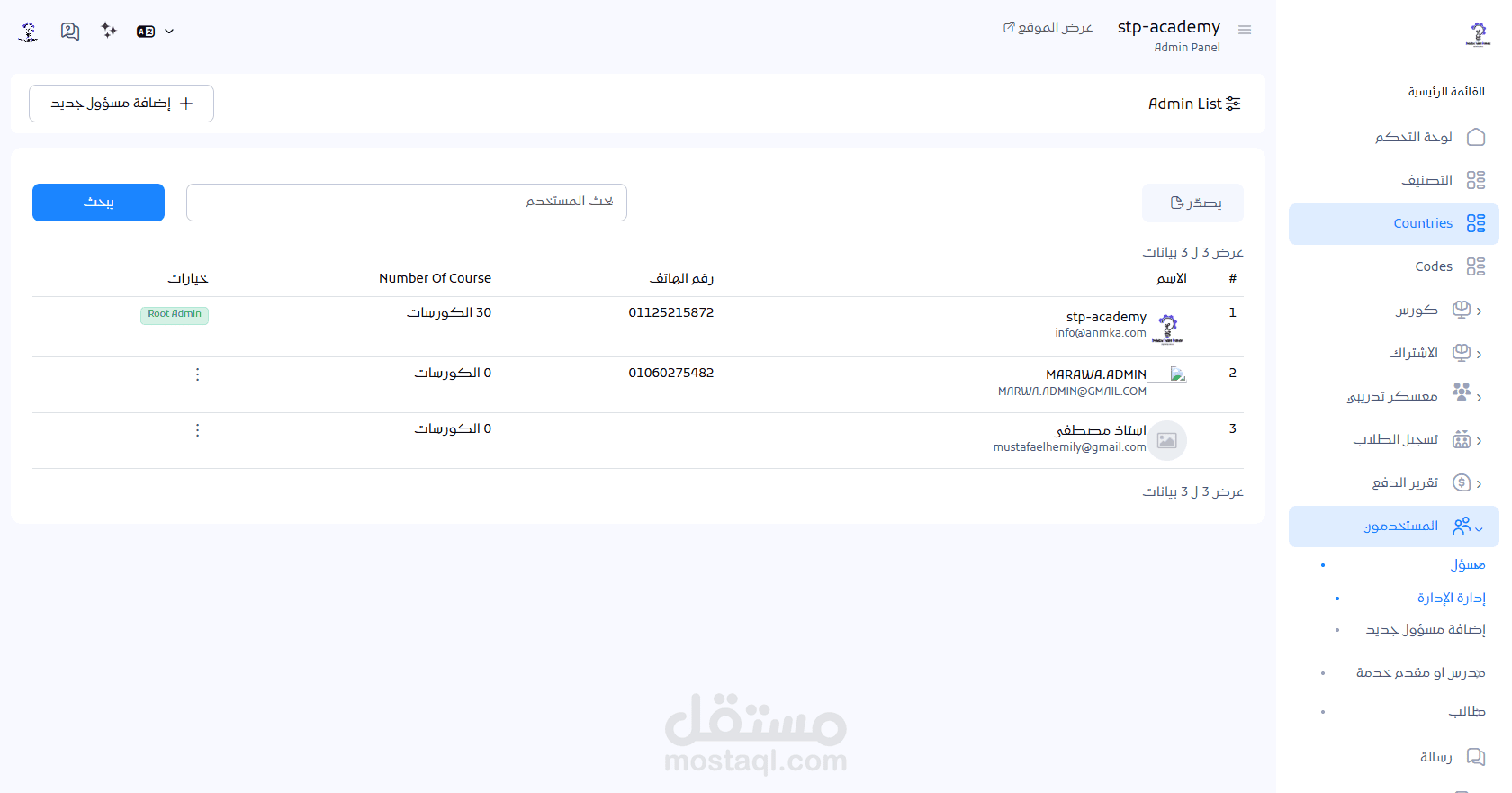 إدارة الدورات الخاصة بكل مدرب مع إمكانية مشاركة الإدارة.