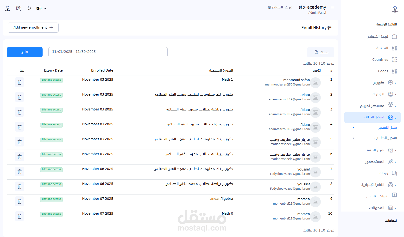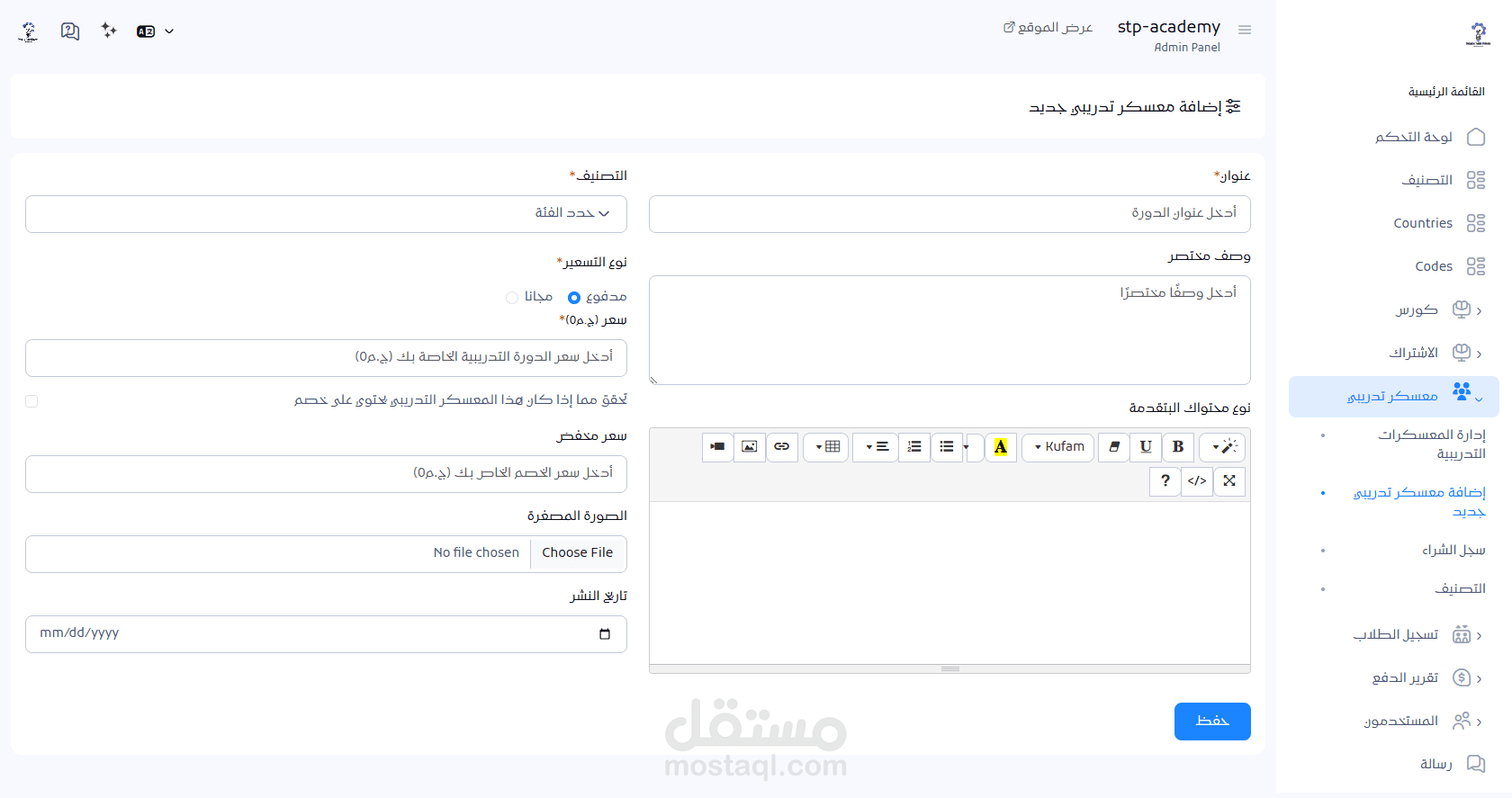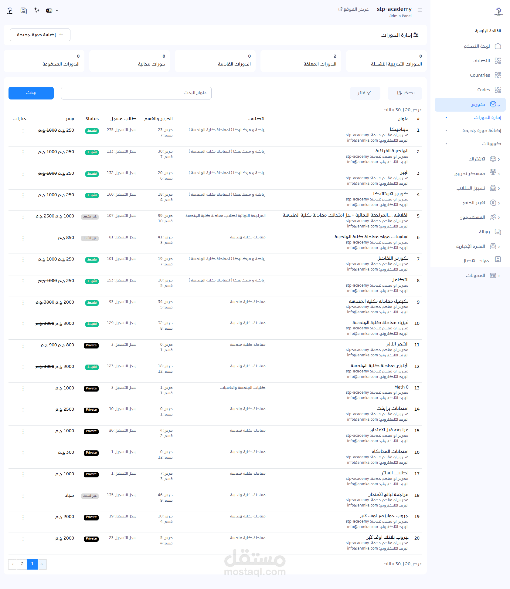 إمكانية تفعيل الدورات المجانية أو المدفوعة.