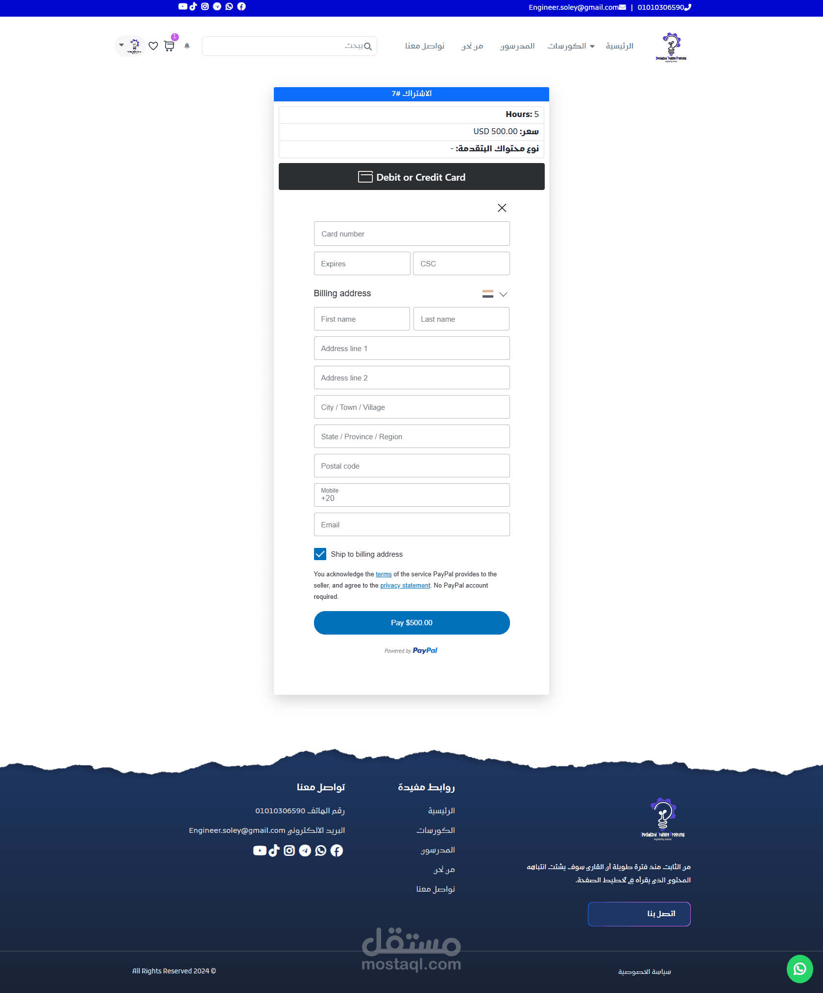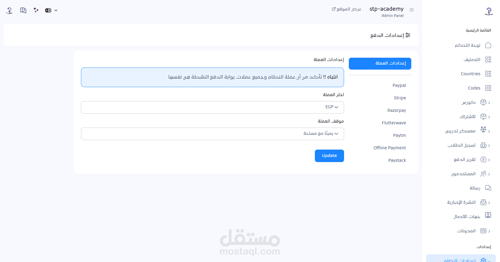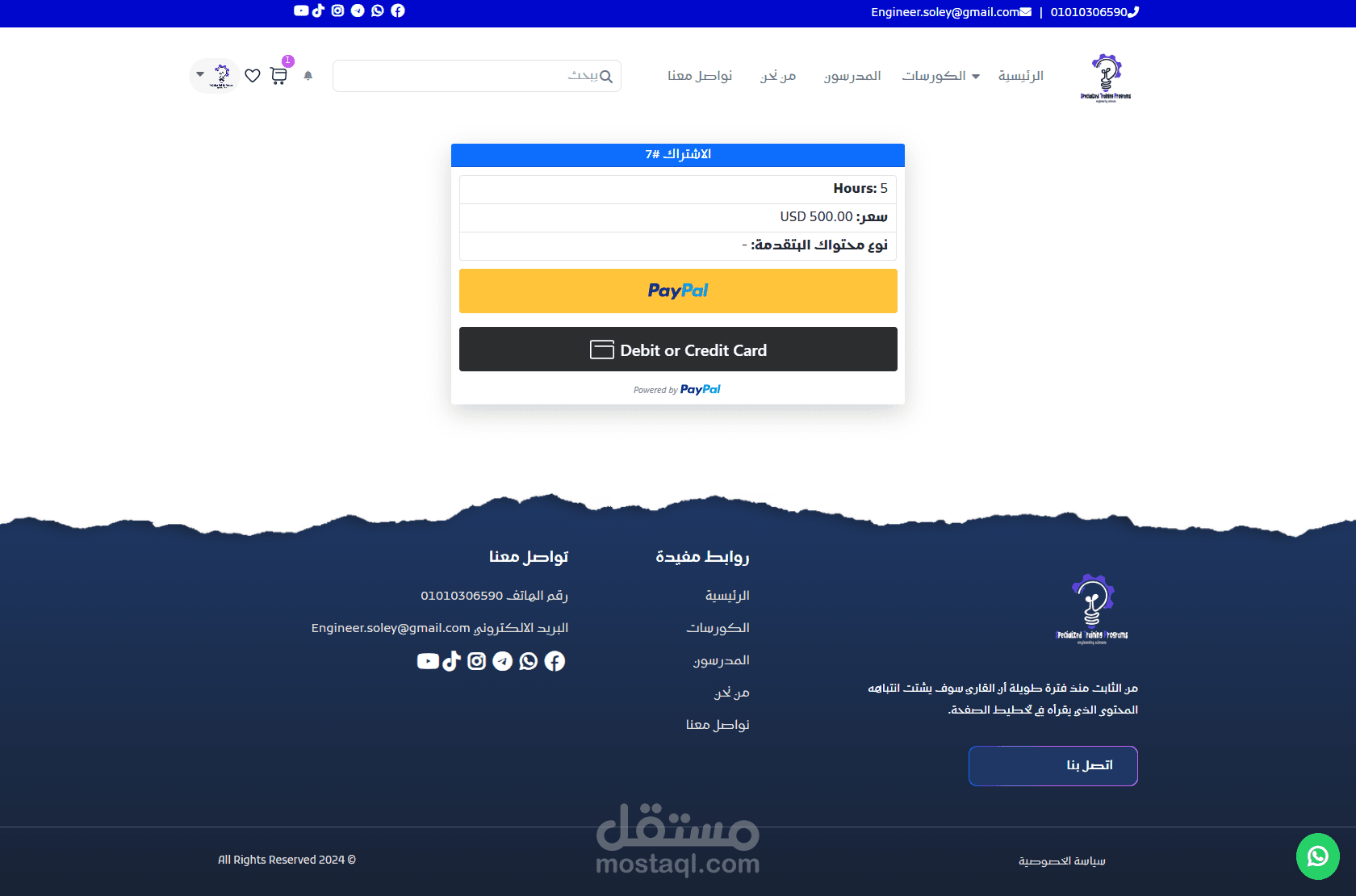 دعم بوابات دفع متعددة (PayPal – Stripe – Paymob حسب الطلب).