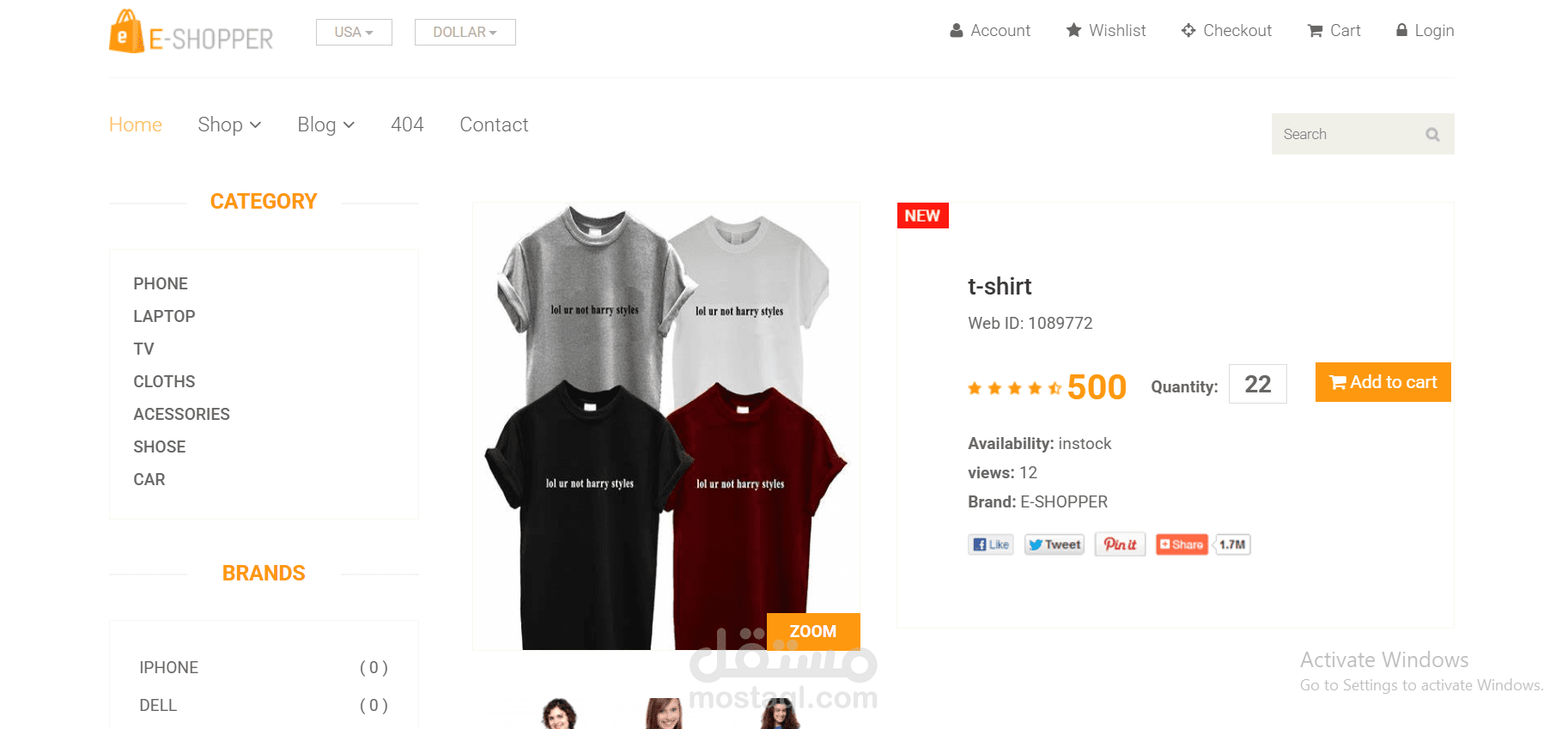 تطوير قالب e-Shopper بالكامل ليصبح متجر إلكتروني احترافي ومتكامل، بالإضافة إلى لوحة تحكم (Dashboard) لإدارة المتجر بسهولة بدون أي خبرة تقنية