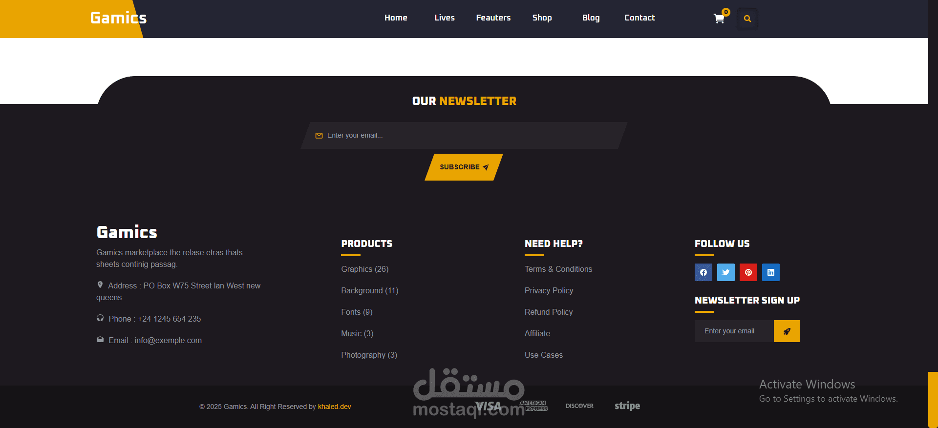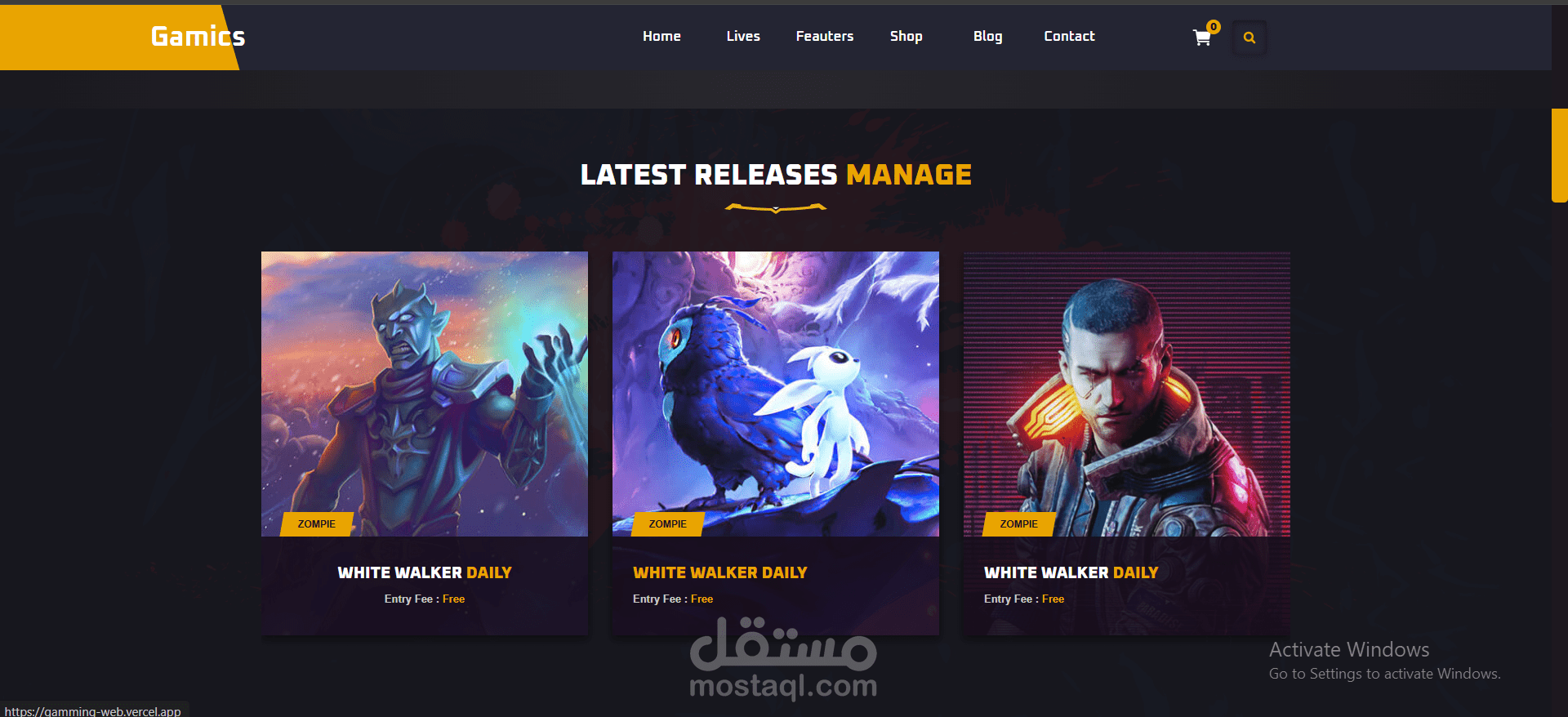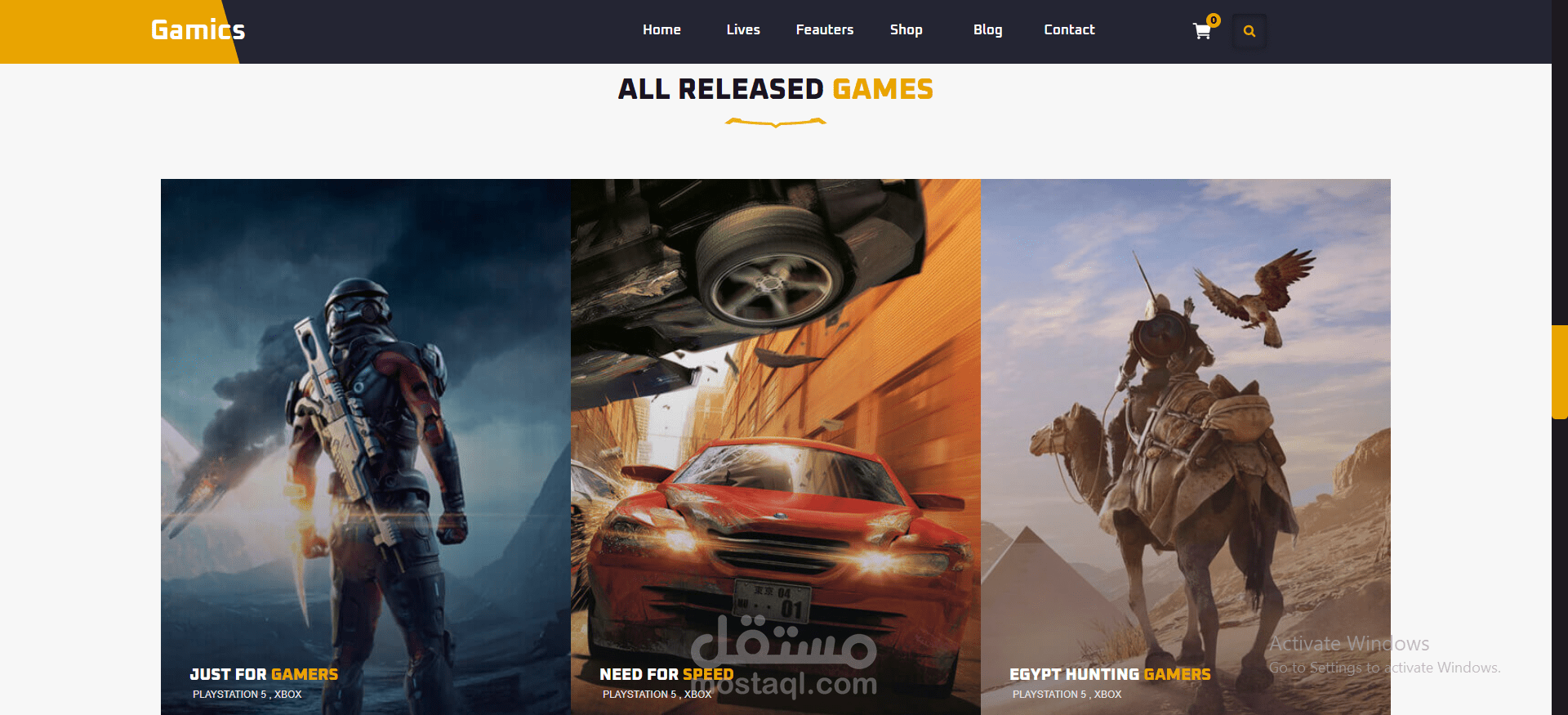 قمت بتصميم وتطوير صفحة هبوط عالية الأداء لشركة/مشروع Gamics، باستخدام التقنيات الأساسية للويب: HTML, CSS, و JavaScript.