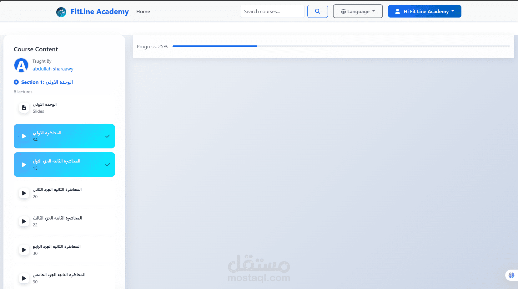 منصة تدريبية متخصصة في مجال كمال الأجسام، تهدف إلى تأهيل مدربين متخصصين ومعتمدين في تدريب رياضيي كمال الأجسام. تتميز المنصة بنظام إدارة محتوى متكامل يتيح للمشرف (الـ Admin) التحكم الكلي في الكورسات المتاحة (إضافة، حذف، تعديل). يتضمن كل كورس تفاصيله الكاملة من: السعر، المحاضرات، الاختبارات، والمواد الإثرائية (الشرائح/Slides). كما يوفر النظام خاصية متابعة دقيقة لتقدم الأعضاء في كل دورة، وهي شرط أساسي لمنح شهادة معتمدة عند إتمام الكورس بنجاح.