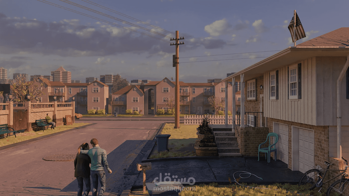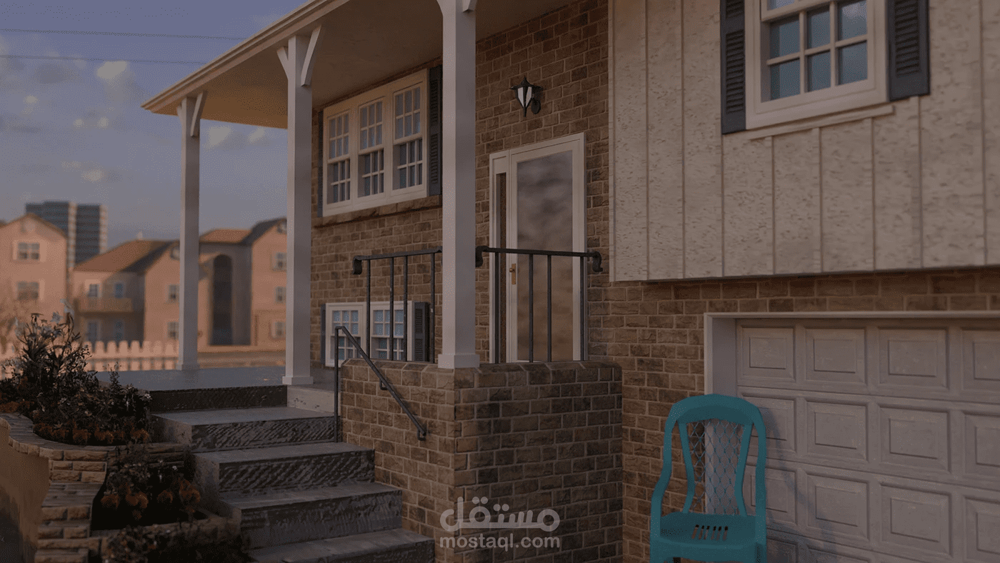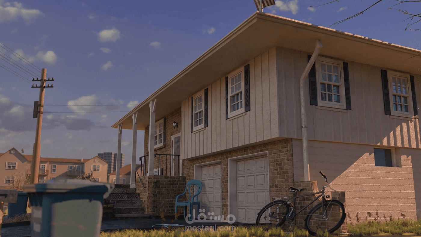 تصميم ثلاثي الأبعاد عن حي أمريكي تم تصميمه ببلندر و تم عمل الخامات بسبستانس باينتر