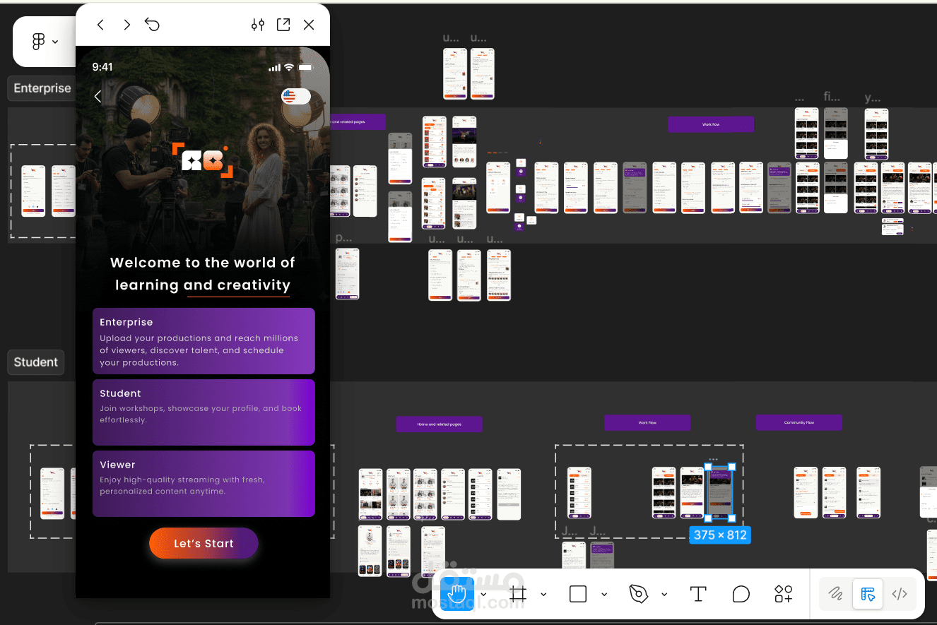 إنشاء نموذج تفاعلي (Interactive Prototype) لمحاكاة تجربة التطبيق.