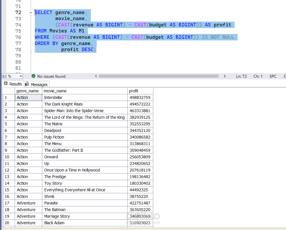 A brief data analysis project exploring a dataset of 100 movies using SQL and Power BI.