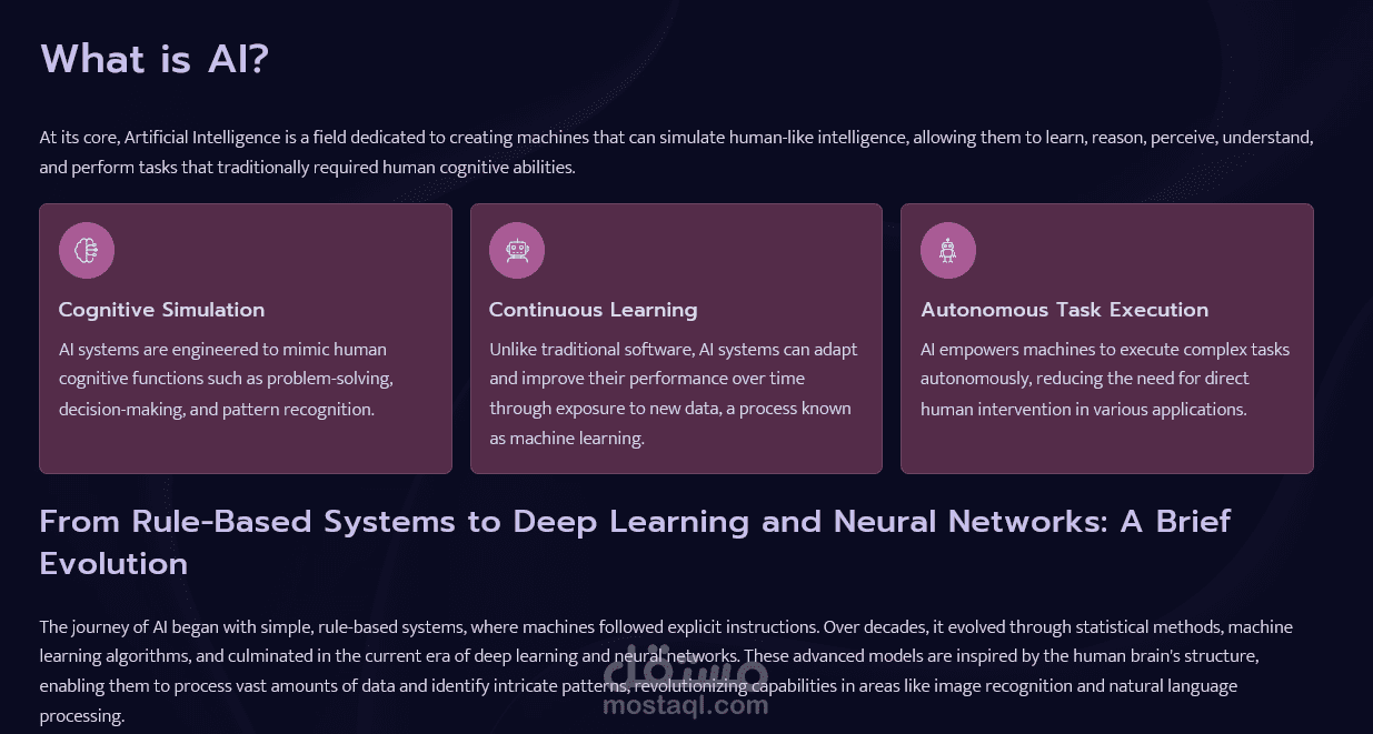 -مقدمة تعريفية عن الذكاء الاصطناعي وتطوره عبر السنوات.