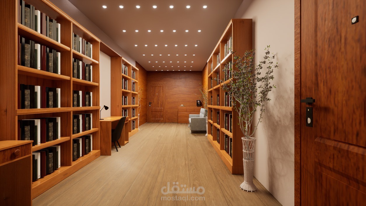 المشروع عبارة عن تصميم ثلاثي الأبعاد لمكتبة عامة حديثة، يهدف إلى عرض توزيع المساحات الداخلية مثل منطقة القراءة، الرفوف، والاستقبال. تم التركيز على الواقعية في الموديلينغ، والخامات، والإضاءة لإنتاج ريندر نهائي مناسب للعرض في بورتفوليو. يشمل المشروع تصميم الأثاث، العناصر الديكورية، الكتب، والمساحات المخصصة للأطفال، مع مراعاة التنظيم البصري والراحة للمستخدم.