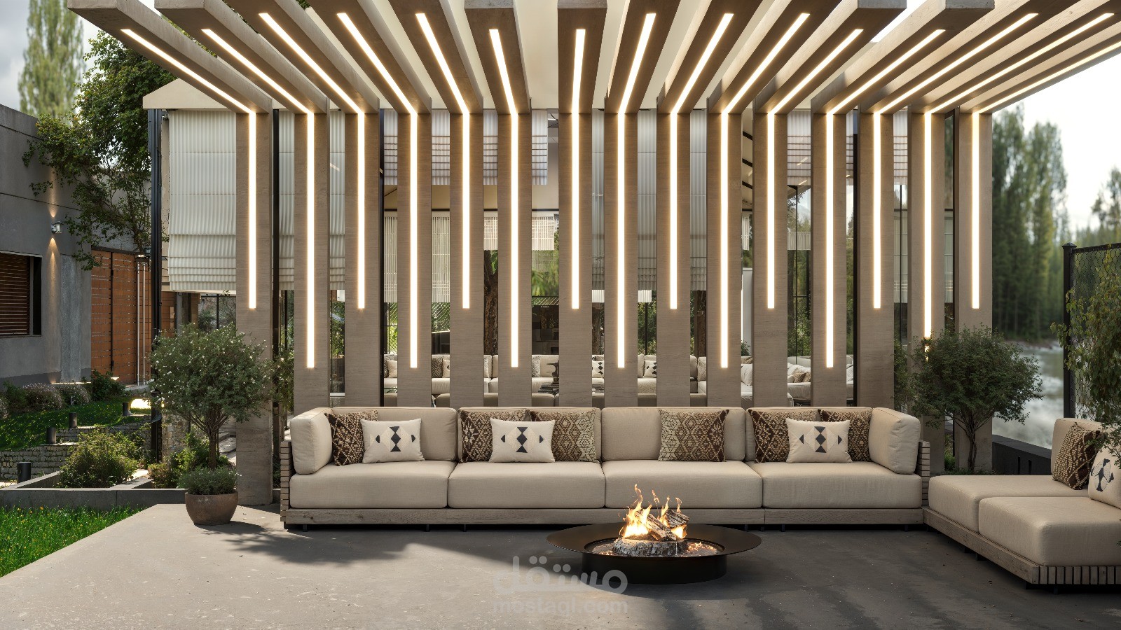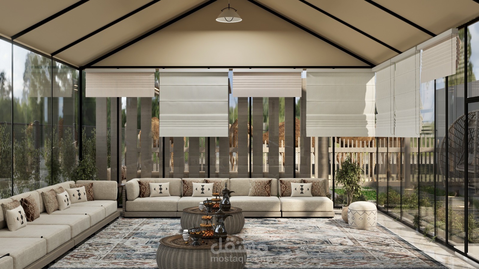 This project presents a unique Najdi-style tent designed within a private villa, seamlessly integrated with a landscape concept that reflects the essence of traditional Saudi hospitality. The design reimagines the heritage of Najdi architecture in a contemporary form, offering a warm, cultural, and inviting outdoor–indoor experience.