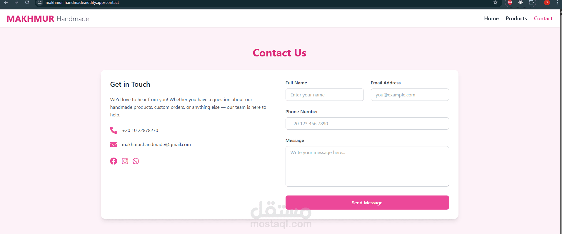 يشمل أيضًا صفحة تواصل معنا لتسهيل تواصل العملاء مع البراند.