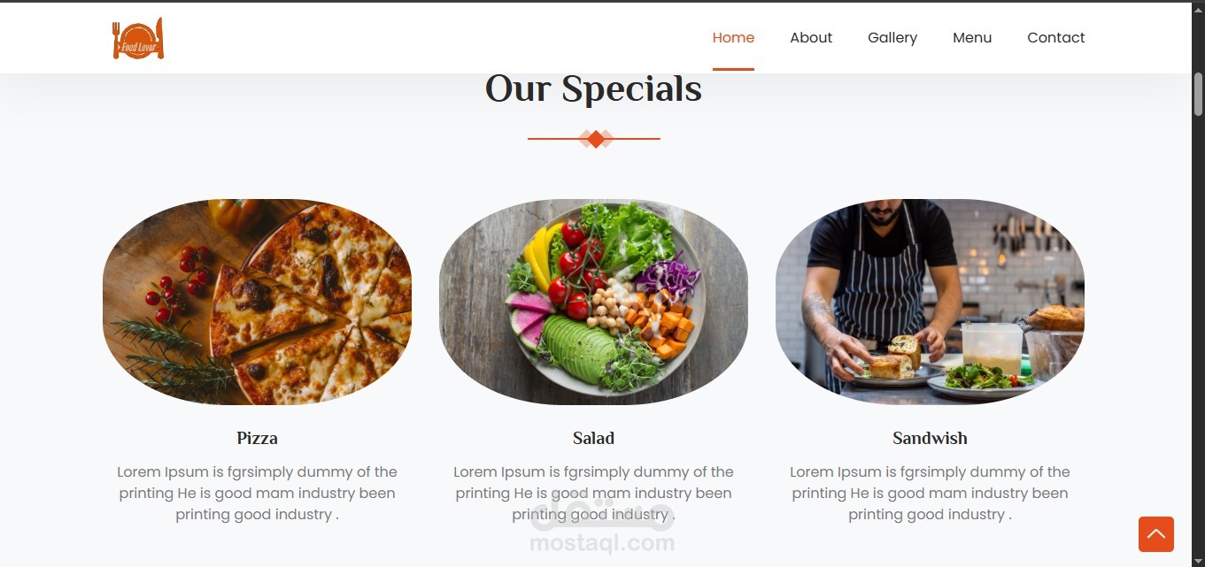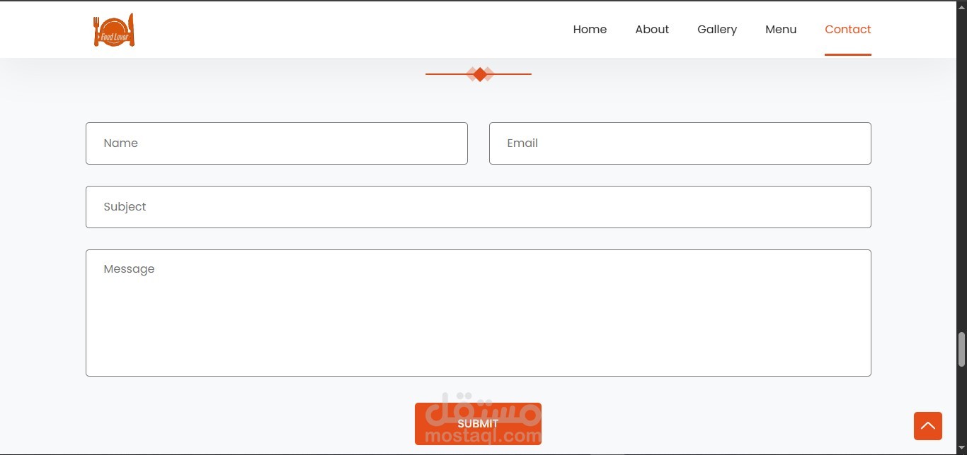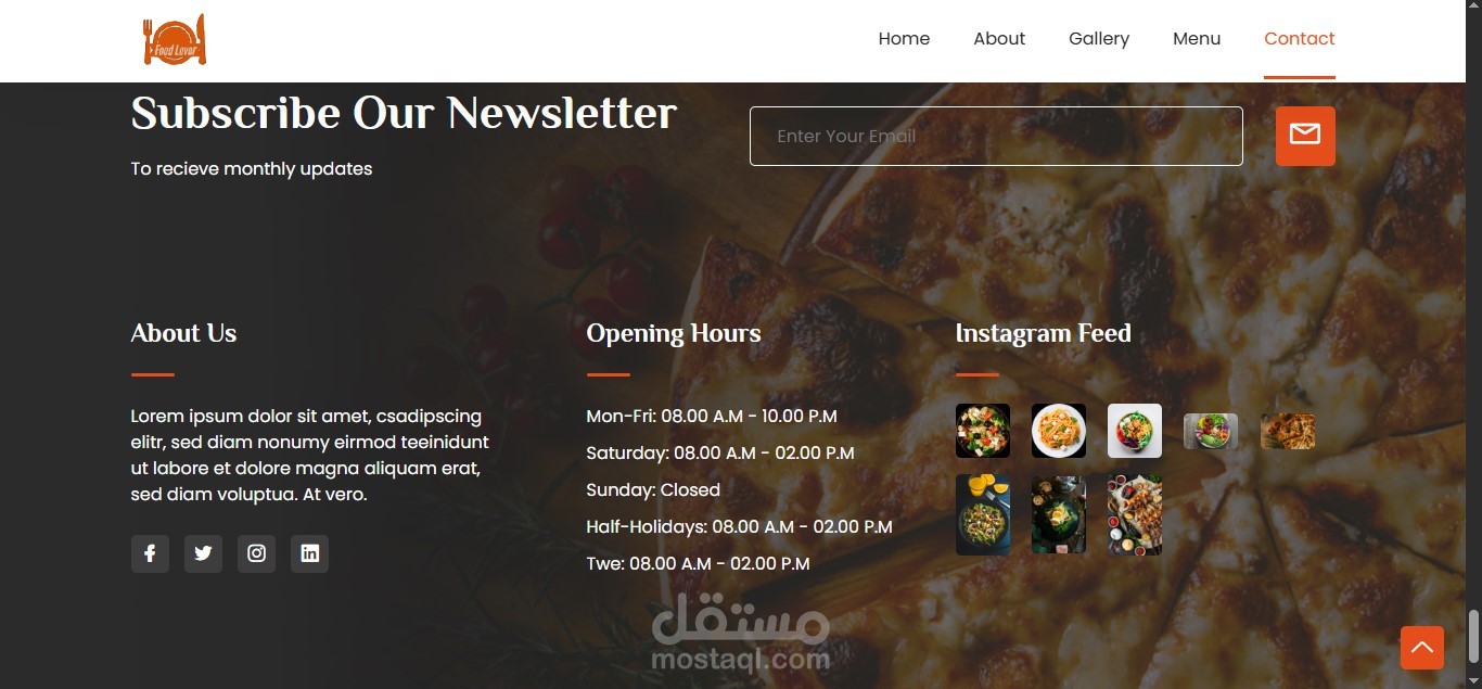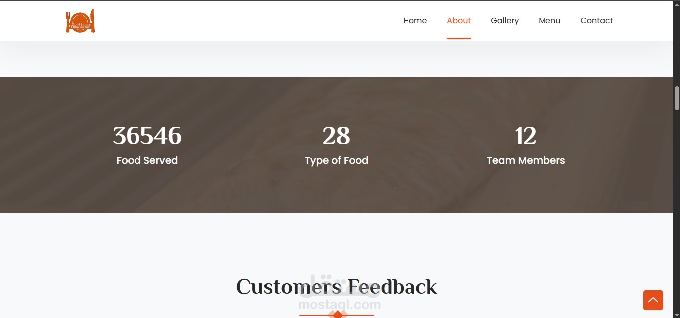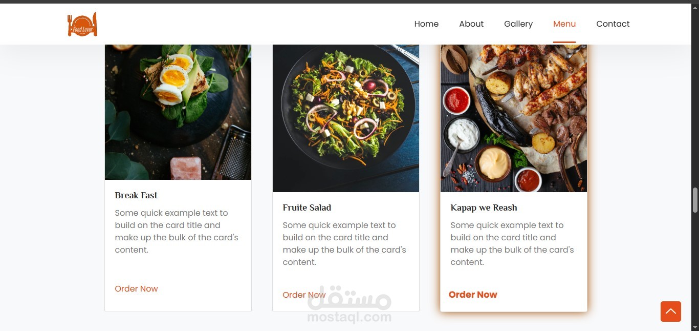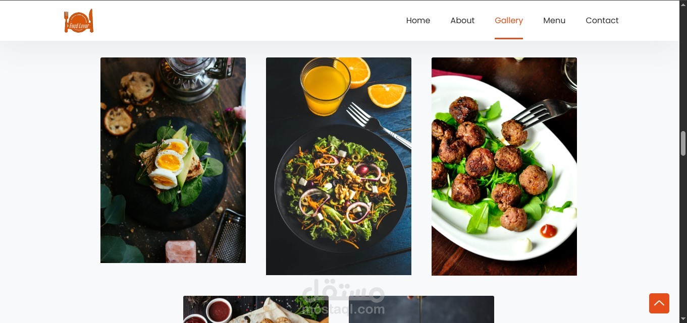– Main sections include: Home, About, Menu, Gallery, and Contact.