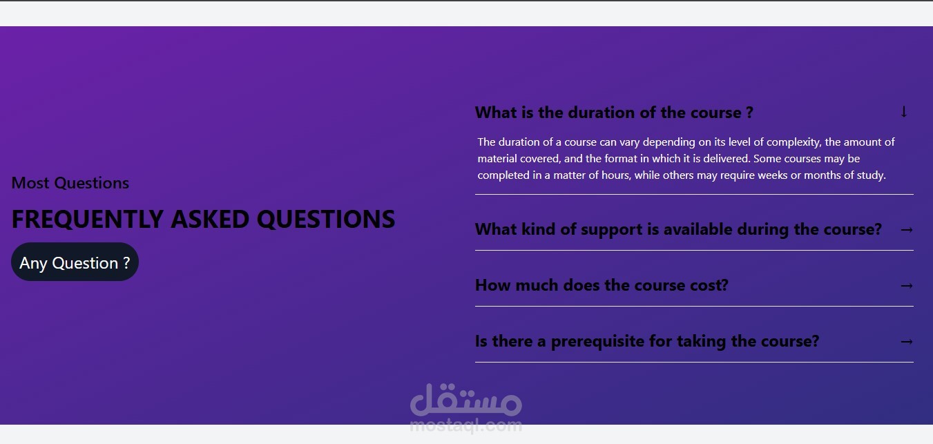 – Organized sections such as: Home, Courses, Testimonials, and Contact.