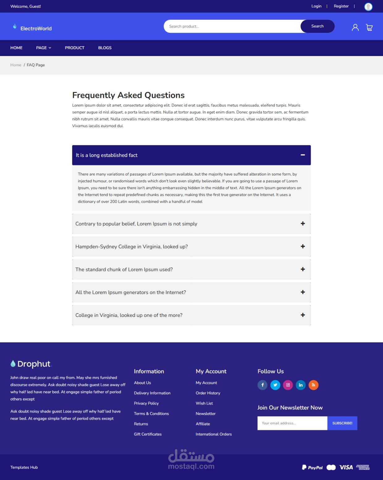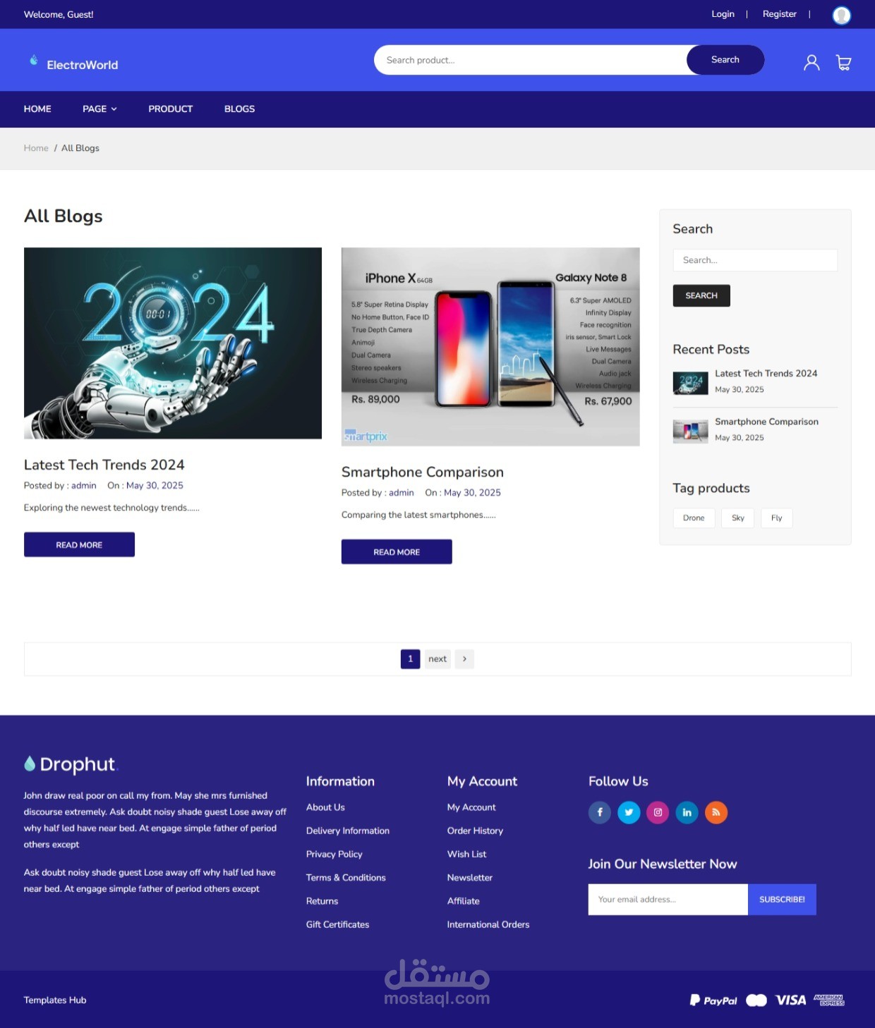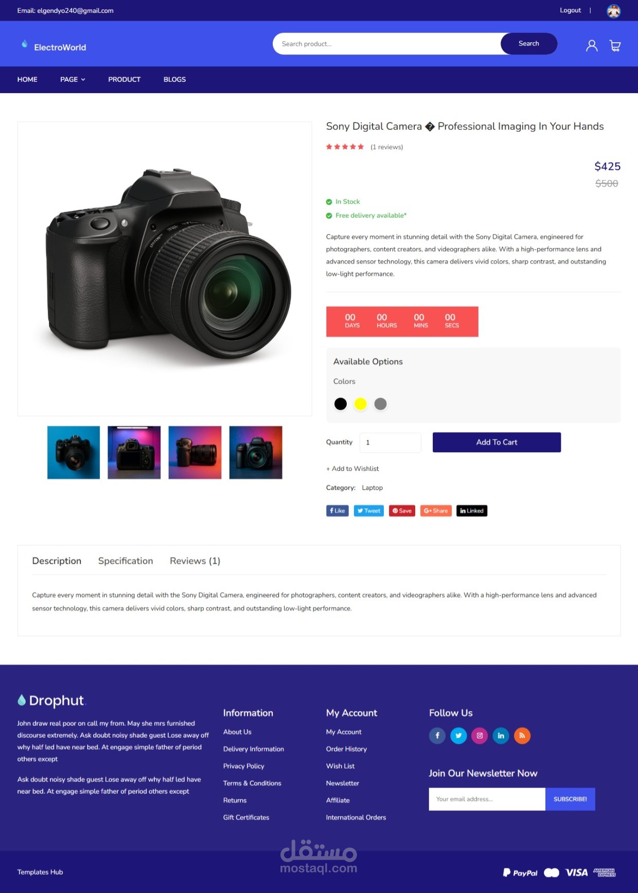 تدعم نظام مستخدمين آمن، إدارة منتجات كاملة (أقسام، علامات تجارية، مخزون)، وسلة تسوق ديناميكية مع إنشاء طلب وفاتورة تلقائيًا.